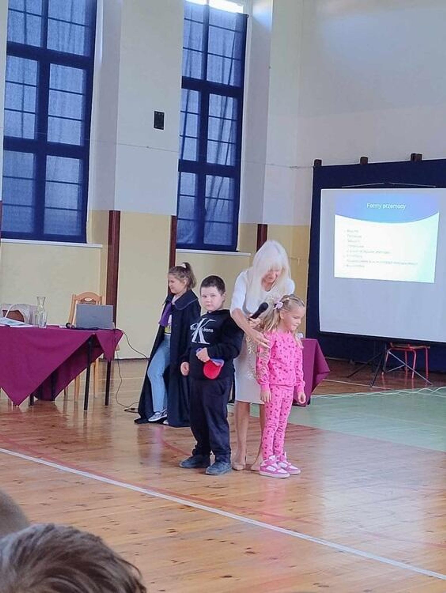 Pani Anna Maria Wesołowska spotykała się przez cały dzień z przedstawicielami różnych środowisk, w tym także z uczniami klas I-III i dziećmi z naszych oddziałów zerówkowych, czyli z "Jeżykami" i "Pszczółkami".