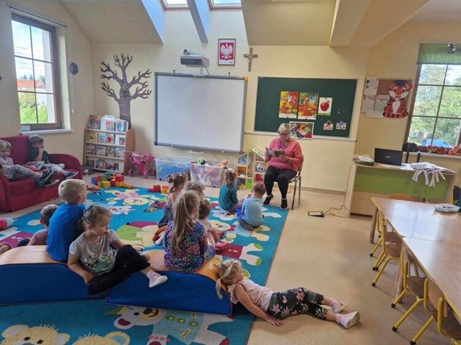 Z okazji Ogólnopolskiego Dnia Głośnego Czytania w piątek odwiedziły nas członkinie młynarskiego Koła Gospodyń Wiejskich, by umilić naszym przedszkolakom dzień swoim czytaniem. Dzieci przysłuchiwały się czytanym utworom/ bajkom z wielką uwagą, ale chyba z jeszcze większym zainteresowaniem przyglądały się przybyłym gościom, a to ze względu na piękne stroje, które członkinie KGW w Młynarach uszyły sobie same!