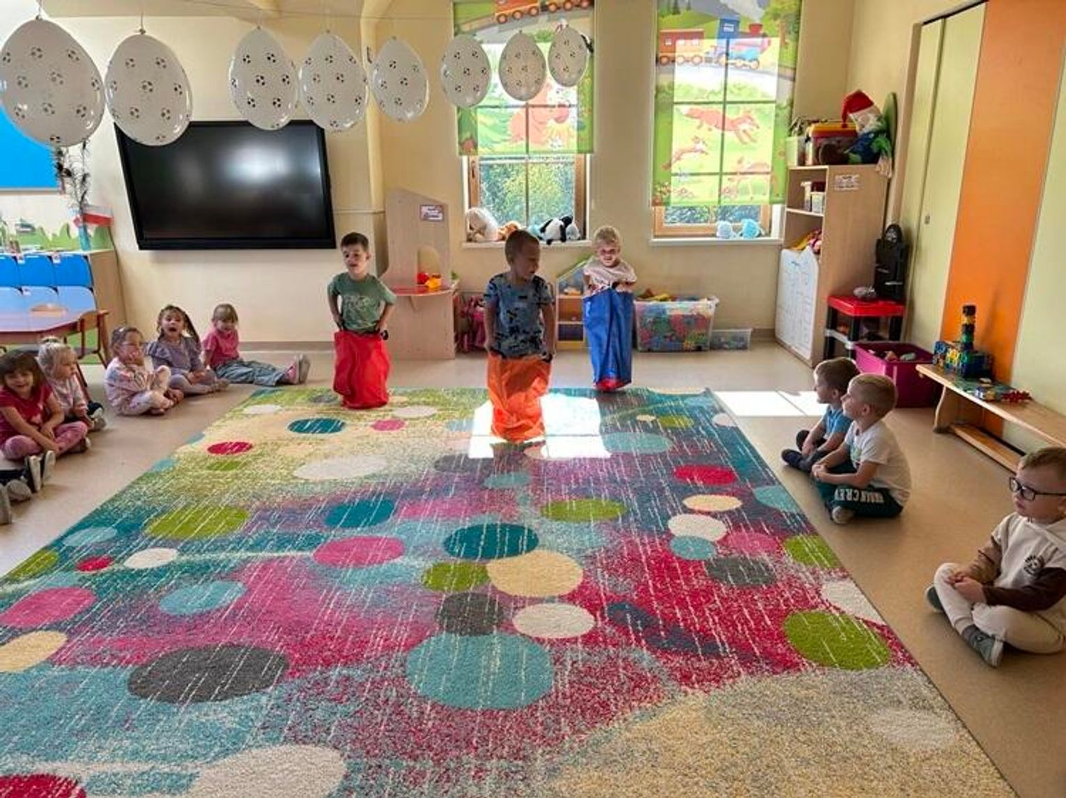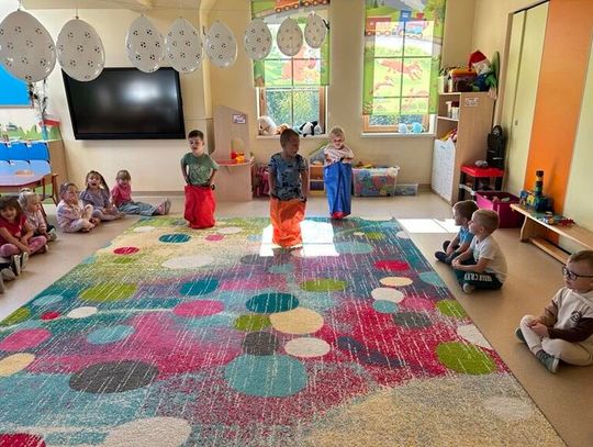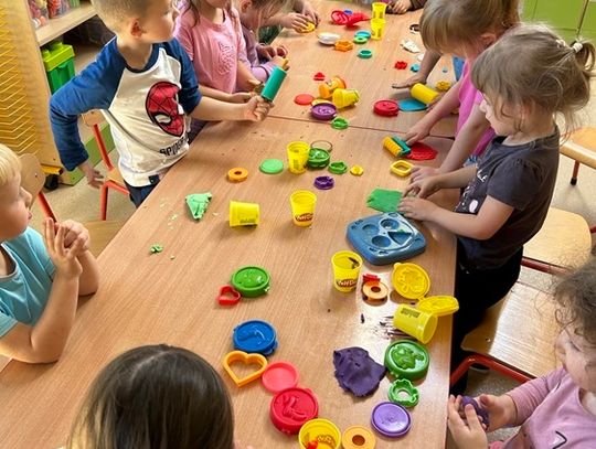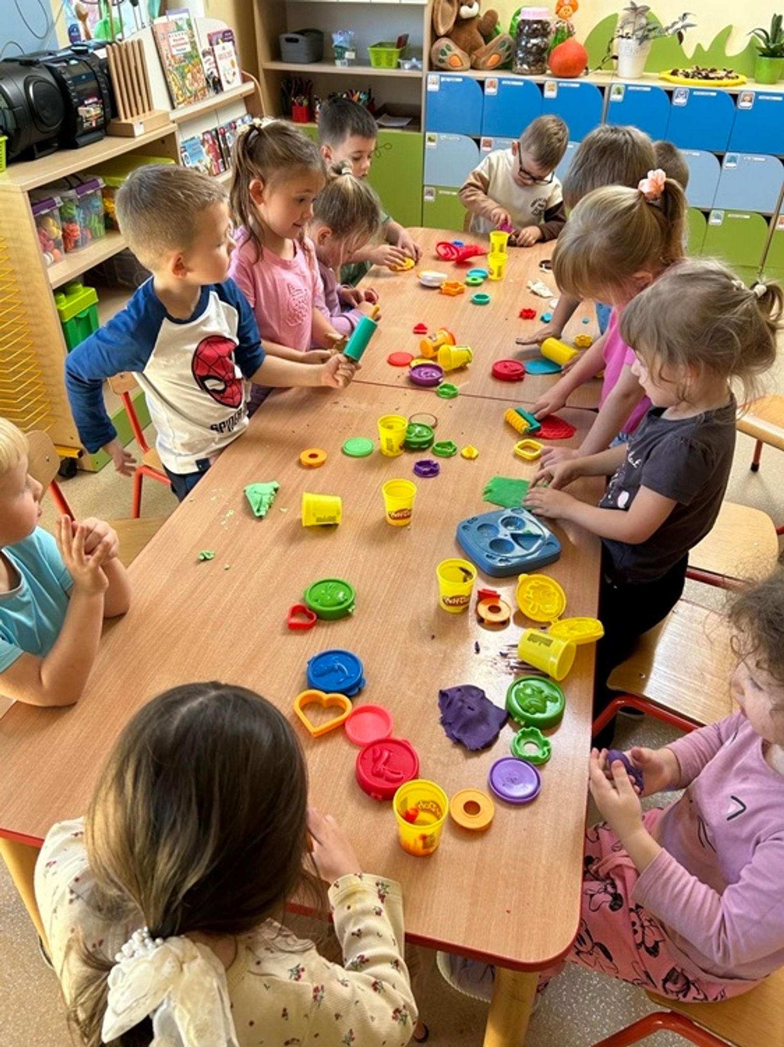 Z tej okazji nauczycielki przygotowały dla swoich podopiecznych wiele atrakcji: były zabawy z chustą animacyjną i balonami, zawody sportowe, lepienie z ciastoliny oraz malowanie wytworów z masy solnej.