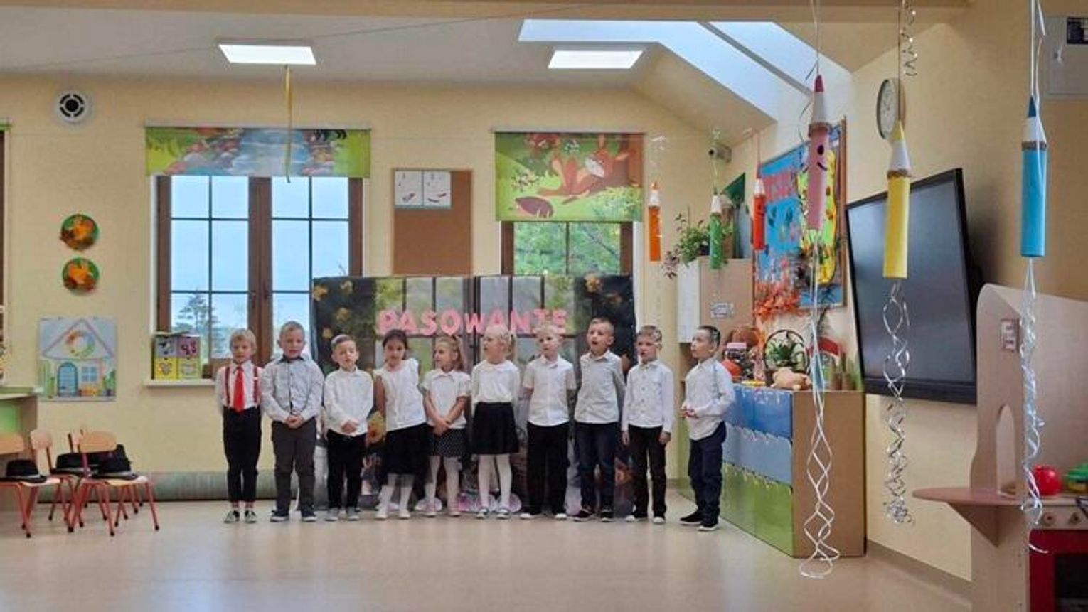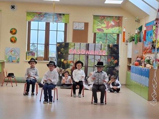 Uroczystość rozpoczęła się od części artystycznej - dzieci zaprezentowały swoje umiejętności wokalne oraz ruchowe i to w dwóch językach: polskim i angielskim. Następnie pani Dyrektor dokonała pasowania każdego "Zajączka" na przedszkolaka.