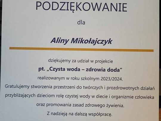Wszystkie placówki otrzymały statuetki, podziękowania dla placówki oraz podziękowania imienne dla każdego z koordynatorów zaangażowanych w realizację projektu. W naszym Przedszkolu byłam to ja - Alina Mikołajczyk w grupie "Motylków", oraz p. Anna Stando w grupie "Pszczółek".