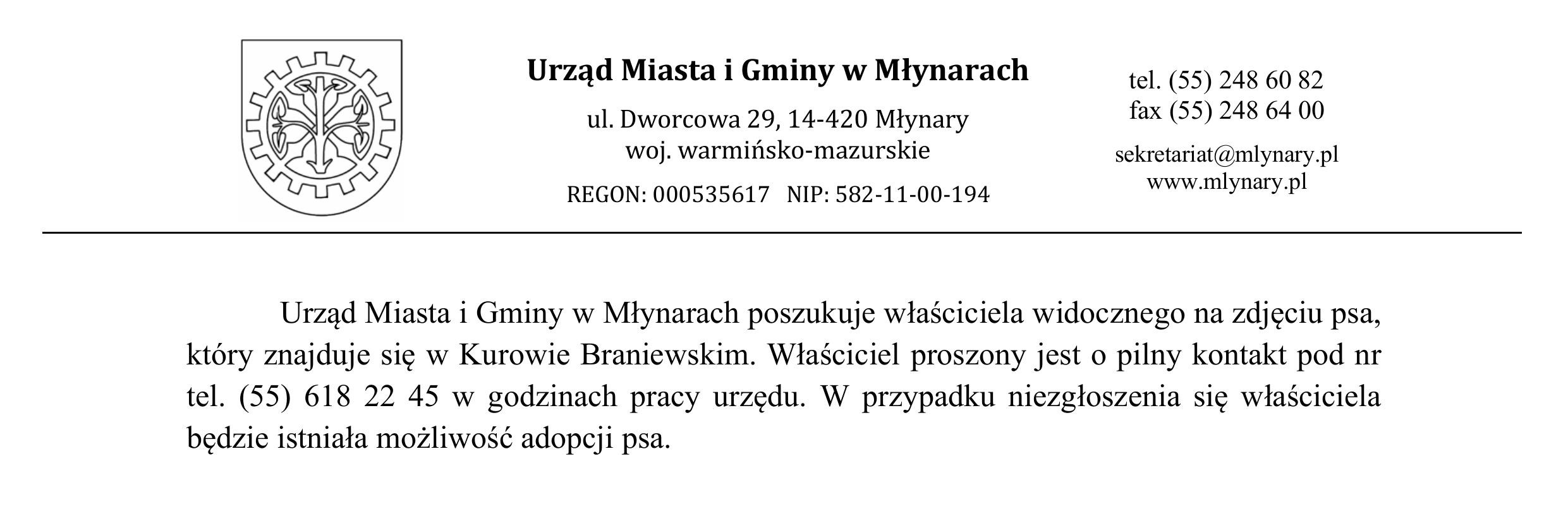Urząd Miasta i Gminy w Młynarach poszukuje właściciela widocznego na zdjęciu psa.