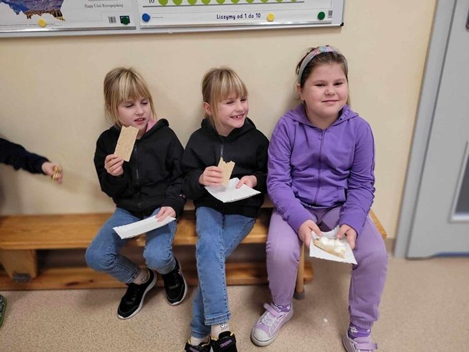 Śniadanie to najlepszy start w nowy dzień, dlatego przedszkolaki z grup "Pszczółki" oraz "Jeżyki " wraz z zaproszonymi uczniami klas pierwszych ze Szkoły Podstawowej w Młynarach wspólnie obchodziły dzisiaj "Dzień Zdrowego Śniadania", którego celem jest promowanie zdrowych nawyków żywieniowych.
