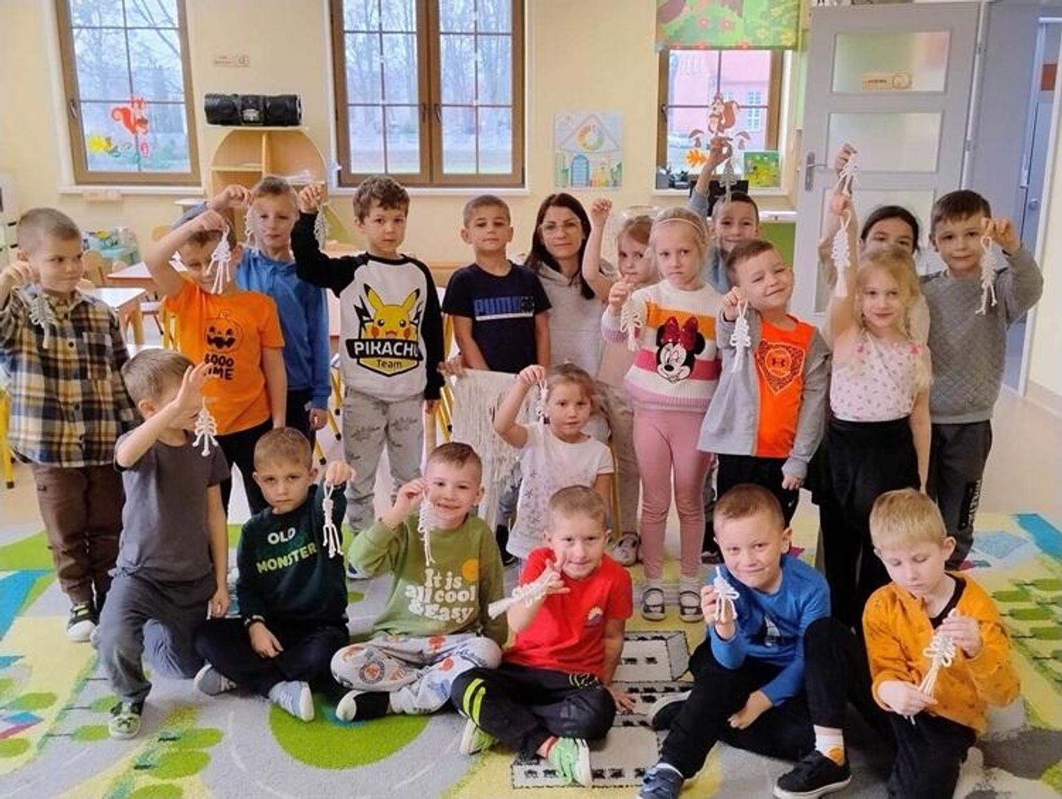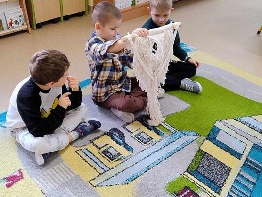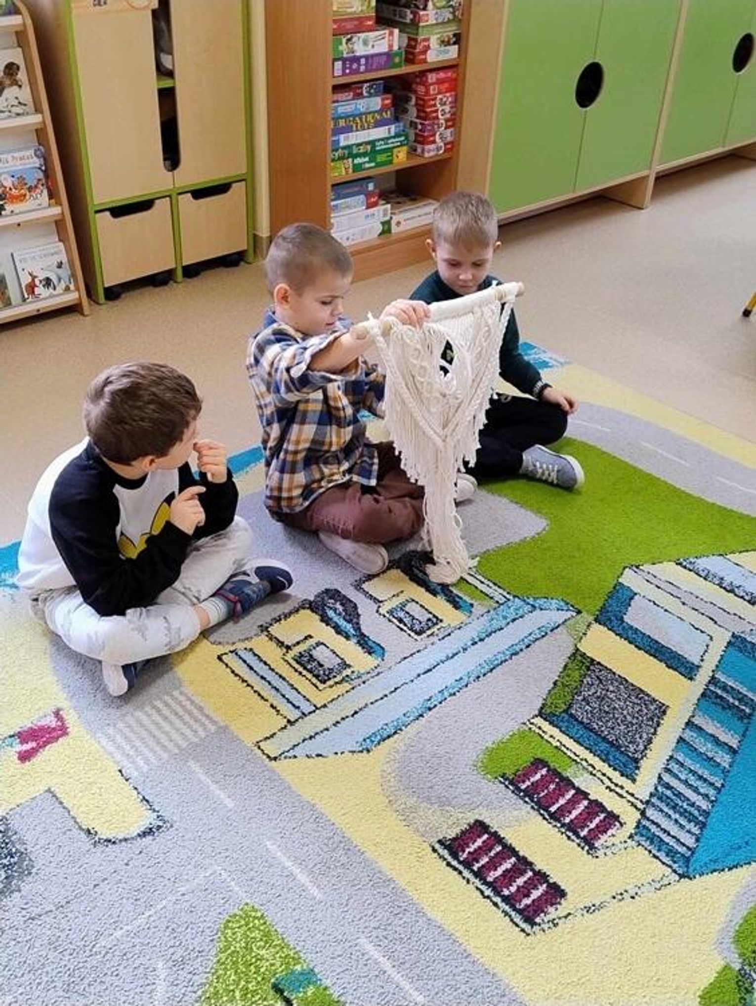 Po prezentacji swojego zawodu pani Magda opowiedziała nam również o swoim hobby, a mianowicie o makramach. Jest to technika dekoracyjnego zaplatania sznurków, tylko i wyłącznie za pomocą rąk. Dzieci mogły z bliska obejrzeć wykonane przez panią Magdę makramowe ozdoby. Dostały również upominki w postaci wykonanych techniką makramy ozdób choinkowych.