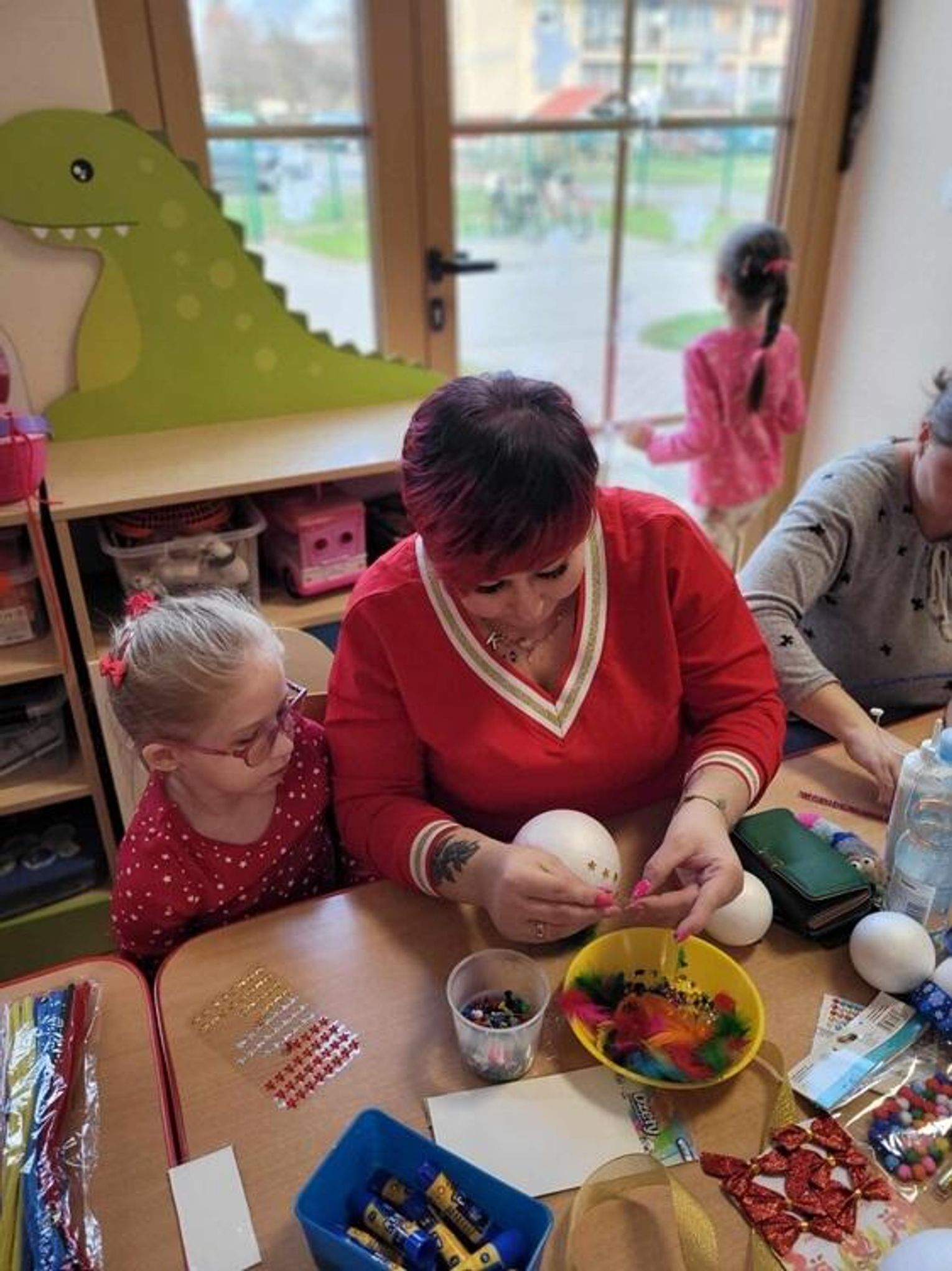 Powstały piękne bombki, które dzieci zabrały do domu i na pewno zajmą one honorowe miejsce na choince. Wspólna twórczość w atmosferze zabawy, zaangażowanie, przeżyte emocje, a co najważniejsze czas, który dzieci spędziły z rodzicami, to bardzo cenne doświadczenie dla obu stron.
