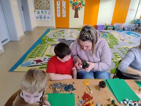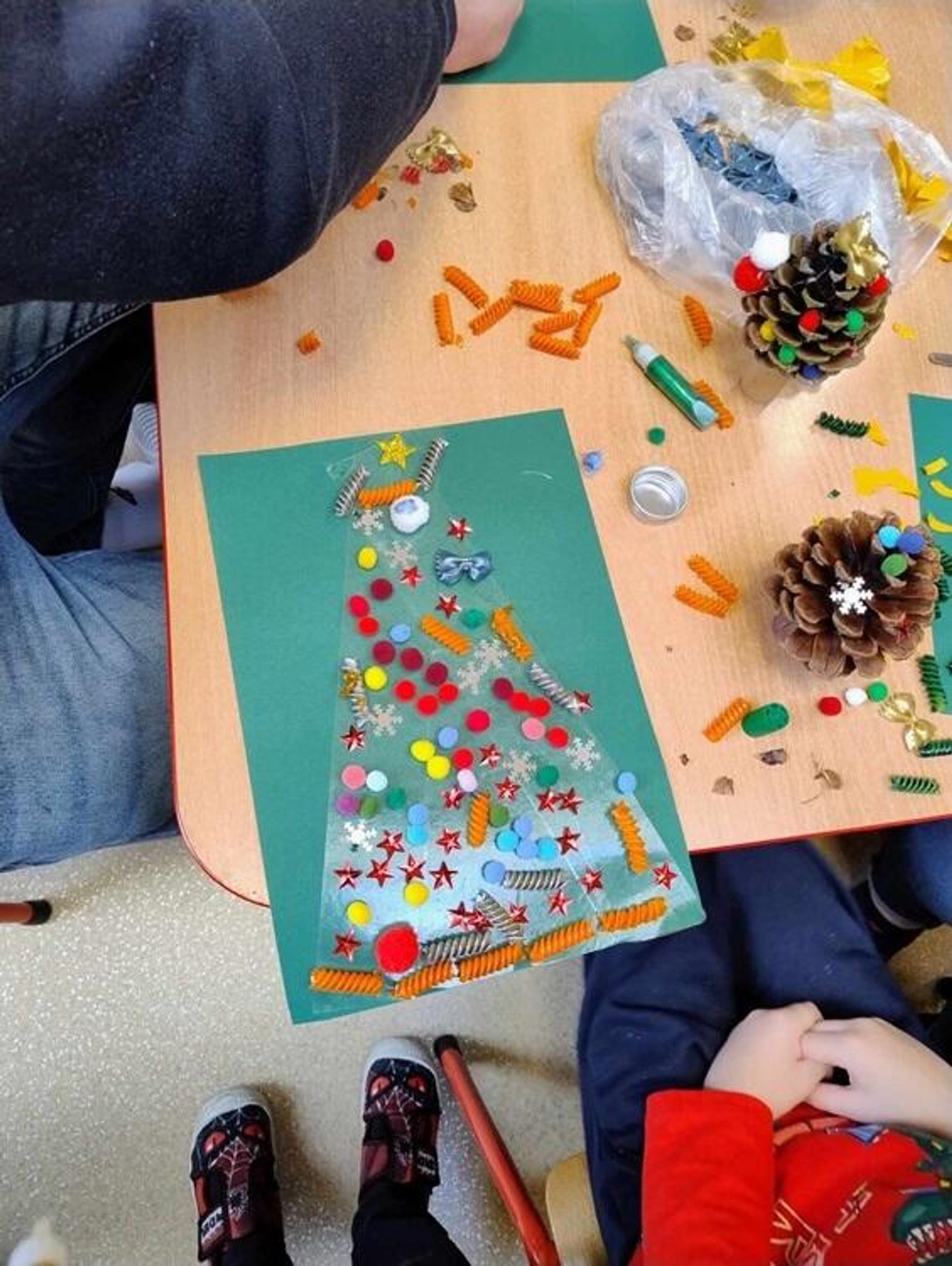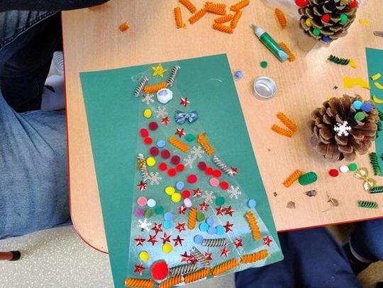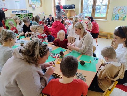 Z rana odbyło się długo wyczekiwane spotkanie ze Św. Mikołajem, które odbyło się w ciepłej i radosnej atmosferze. Przedszkolaki z niecierpliwością czekały na swoją kolej, aby znaleźć się blisko Mikołaja. W nagrodę za zaśpiewanie piosenki, dzieci otrzymały prezenty. Z kolei po obiedzie odwiedzili nas kolejni szczególni goście, również bardzo przez dzieci wyczekiwani, a mianowicie rodzice. Celem wspólnego spotkania były przygotowane przez panią Beatę Czerniak warsztaty bożonarodzeniowe. Dzieci wraz z rodzicami wykonały piękne ozdoby, tj. stroiki i choinki z kolorowego makaronu. Prace wyszły piękne, a najcenniejszy był wspólnie spędzony czas w miłej atmosferze.