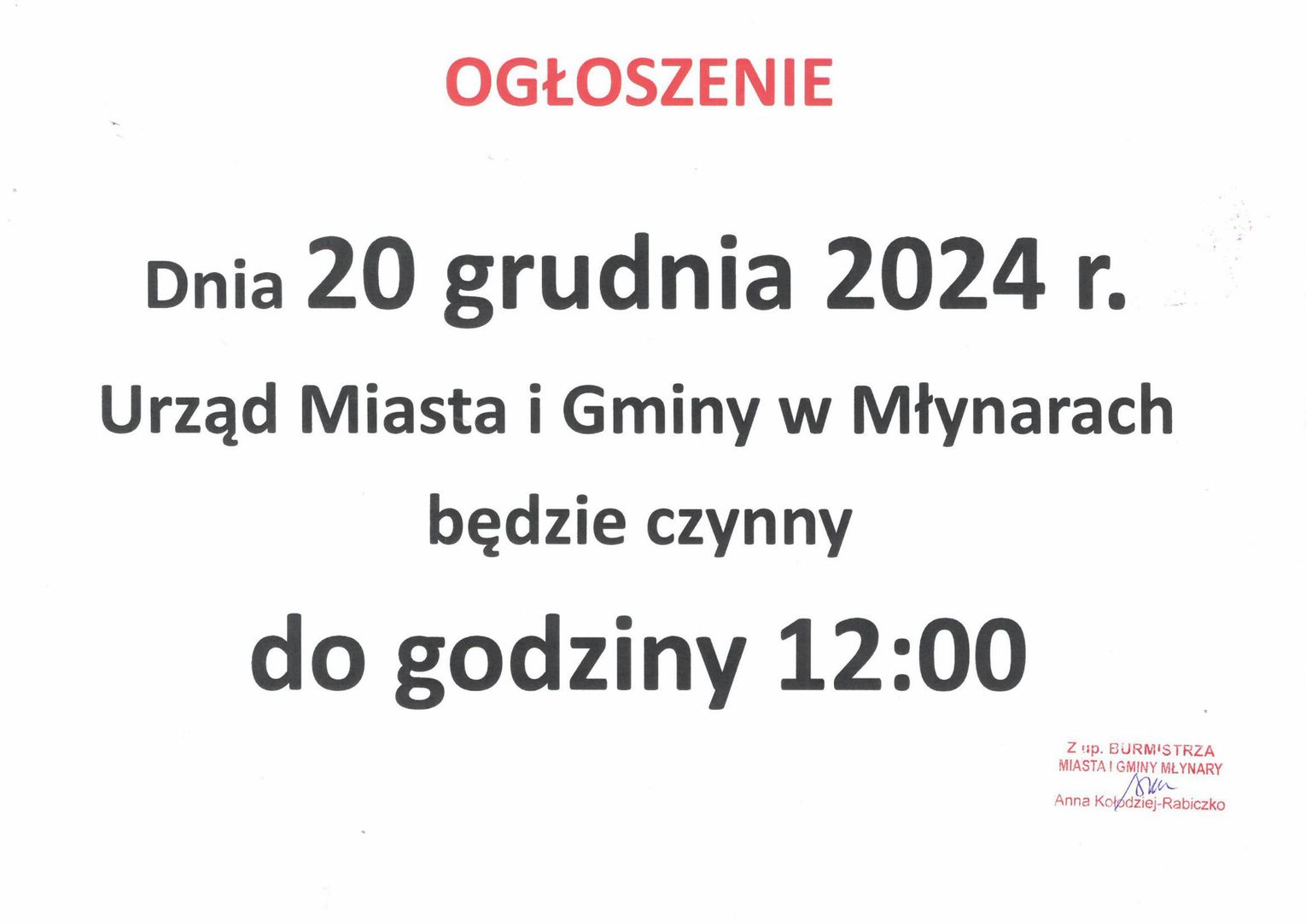 Uwaga! W dniu 20 grudnia Urząd czynny do godziny 12.