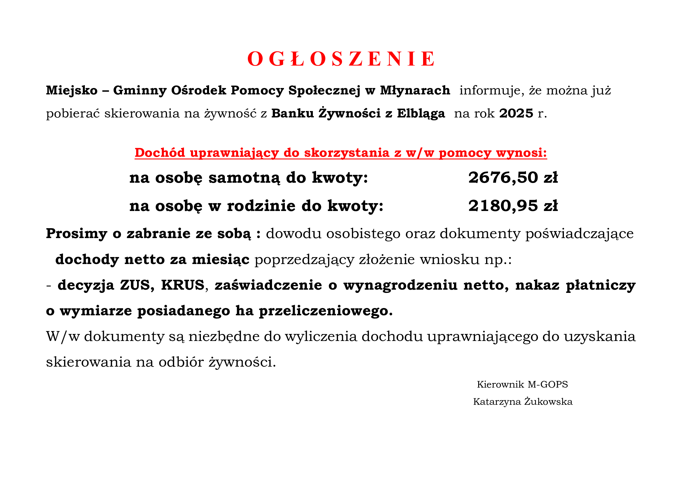 Skierowania na żywność z Banku Żywności