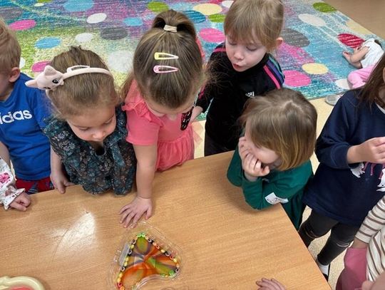 14 luty to nie tylko dzień zakochanych, ale przede wszystkim dzień przyjaźni, sympatii i pozytywnych emocji. ,,Zajączki” świętowały ten dzień nieco inaczej - nasze przedszkolaki lubią działać, więc tego dnia eksperymentowaliśmy! Stworzyliśmy walentynkowego slima, wybuchowy wulkan oraz tęczowe serce. Eksperymentowanie to nie tylko wspaniała zabawa, ale także wdrażanie naszych dzieci do świata nauki: nauka o reakcjach chemicznych (kwas + zasada), obserwowanie rozpuszczania i mieszania kolorów, badanie temperatury wody, działanie z substancjami zwanymi polimerami, a to już brzmi poważnie!