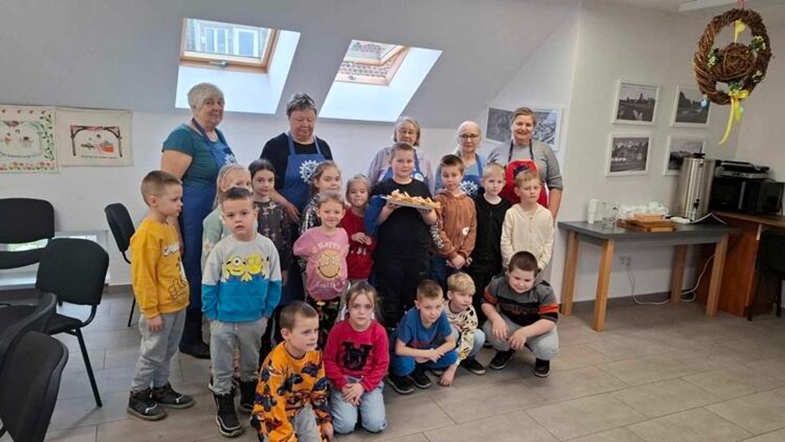 Tłusty Czwartek przypada w ostatnim tygodniu karnawału - w tym roku 27 lutego. Tradycja nakazuje, aby tego dnia zjeść chociaż jednego pączka. Grupa „Pszczółek" i "Jeżyków" miała okazję zapoznać się z tradycją Tłustego Czwartku już we wtorek. kiedy to została zaproszona do Koła Gospodyń Wiejskich w Młynarach na wspólne smażenie chrustów. Dzieci pod czujnym okiem Pań z Koła miały możliwość wykrajania ciasta oraz ulepienia pysznego chrusta. Punktem kulminacyjnym spotkania była wspólna degustacja wypieków.