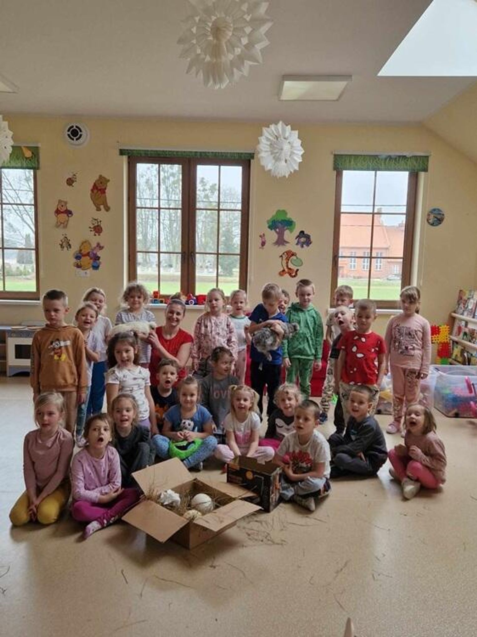 Pani Kasia przywiozła ze sobą również jajka kurze i jajka strusie, dzięki czemu dzieci mogły porównać wielkość tych jaj. Być może następnym razem przyjedzie do nas ze strusiem?