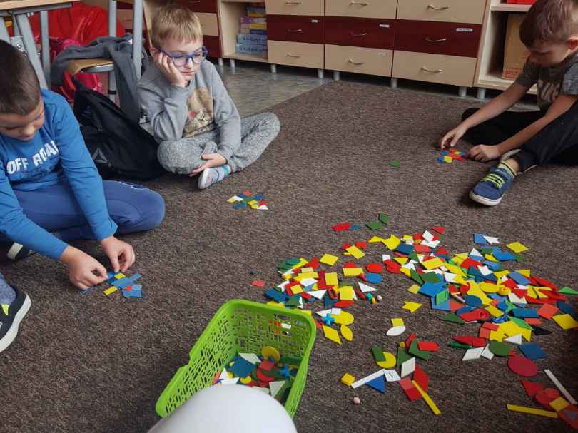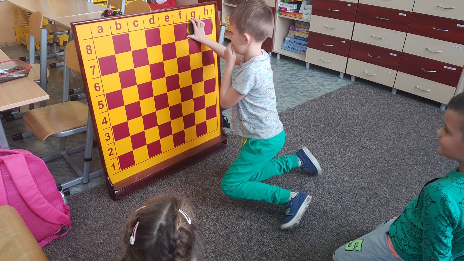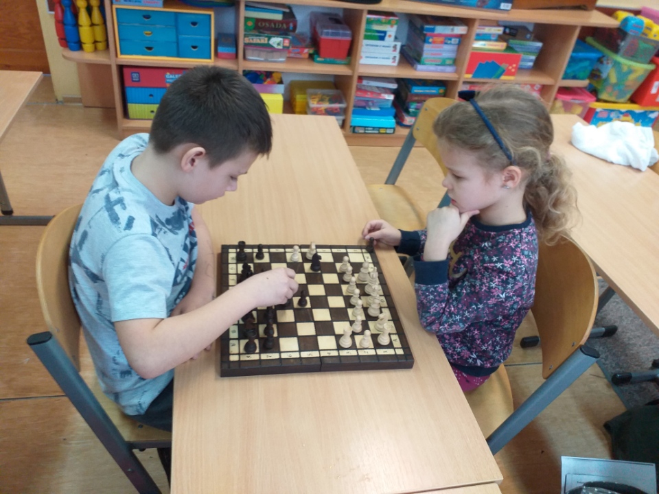 W trakcie zajęć uczniowie wykorzystywali logiczne myślenie do rozwiązywania problemów. Doskonalili umiejętność dodawania i odejmowania. Ćwiczyli koncentracje wykorzystując klocki PUS. Rozpoznawali, nazywali i manipulowali figurami geometrycznymi. Zostali zapoznani z geometrią szachownicy. W grupie 2 W trakcie zajęć uczniowie przeliczali i porównywali zbiory. Ćwiczyli logiczne i analityczne myślenie wykorzystując układanki strategiczne. Poznali figury szachowe. Zapoznali się z geometrią szachownicy. W trakcie zajęć w obu grupach uczniowie rozwijali logiczne myślenie poprzez szeregowanie i strategiczne myślenie z wykorzystaniem gry „Farmer”. Poznali szachownicę, jej elementy oraz bierki szachowe (ich nazwy i ustawienie).