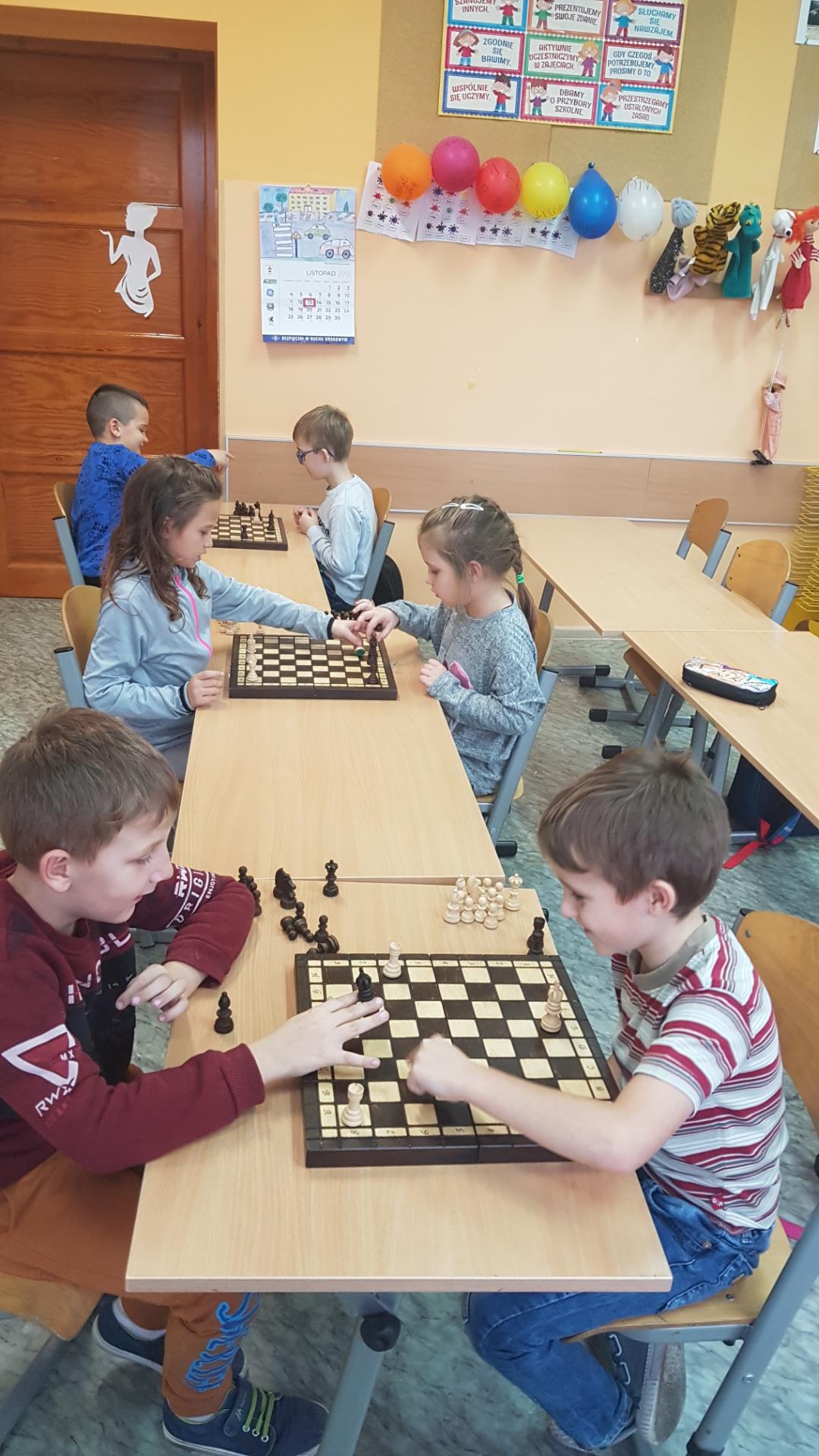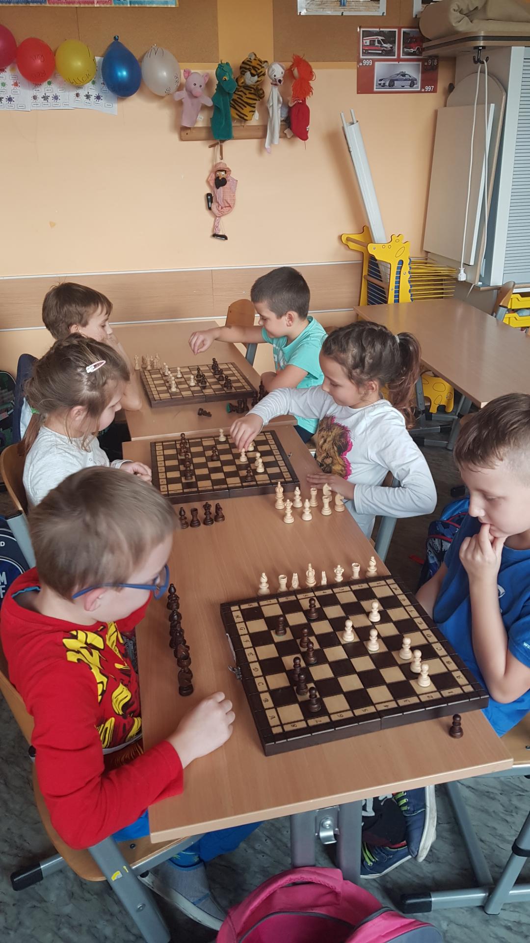 - zajęcia matematyczne rozwijające logiczne myślenie z elementami gry w szachy – zajęcia z zakresu zajęć matematycznych. Realizowane będą przez 4 semestry (IX.2019-VI.2021). Odbywać się będą po lekcjach 2 razy w tygodniu po 45 minut. Podział na grupy (I-III, IV-VII). Grupy będą tworzyć uczniowie z danej klasy. Celem zajęć jest podniesienie strategicznego i logicznego myślenia, rozwijanie kreatywności, ćwiczenie koncentracji uwagi, rozwijanie wyobraźni przestrzennej, umiejętności gry fair play, godzenie się z porażką, kształtowanie umiejętności planowania nad emocjami oraz wytrwałość. Dla uczestników projektu zostanie zorganizowany turniej szachowy „Mistrz szachów” oraz uczestnicz wezmą udział w wyjazdach edukacyjnych. Klasy I-III wyjadą na 2 dniowe warsztaty w gospodarstwie agroturystycznym a klasy IV-VIII wyjadą na 2 dniowy wyjazd edukacyjny do Torunia.
