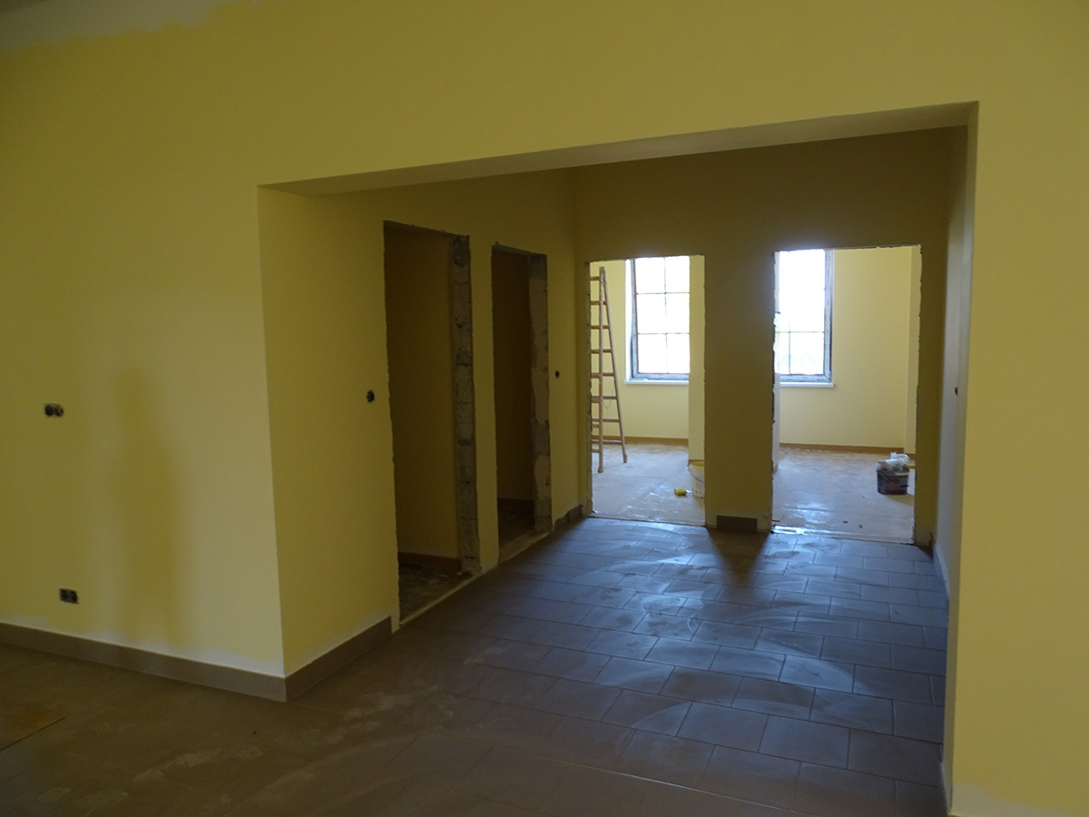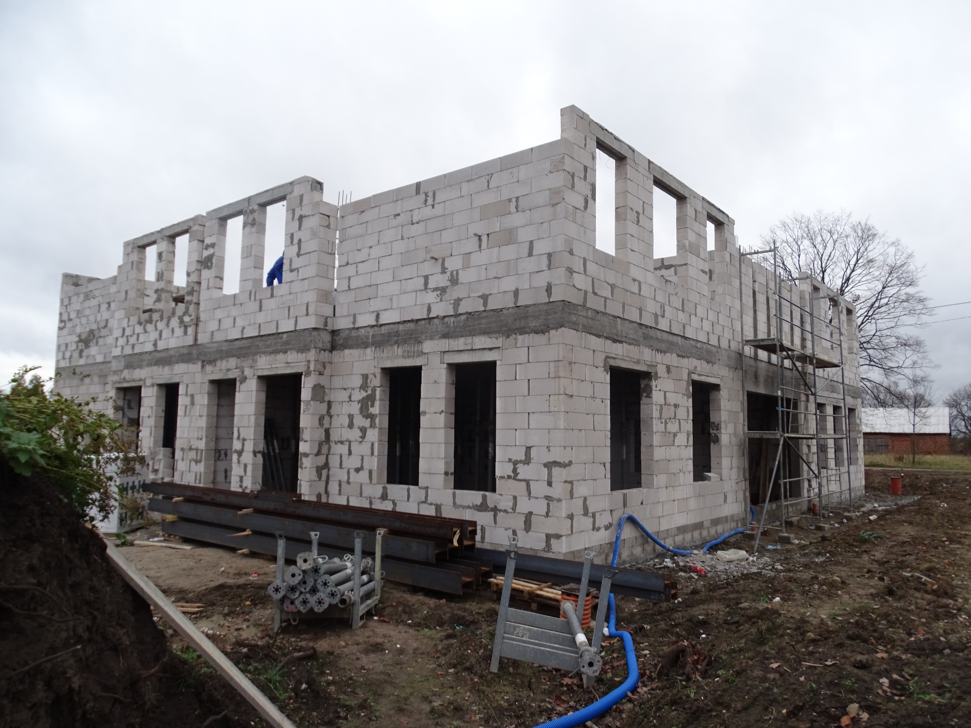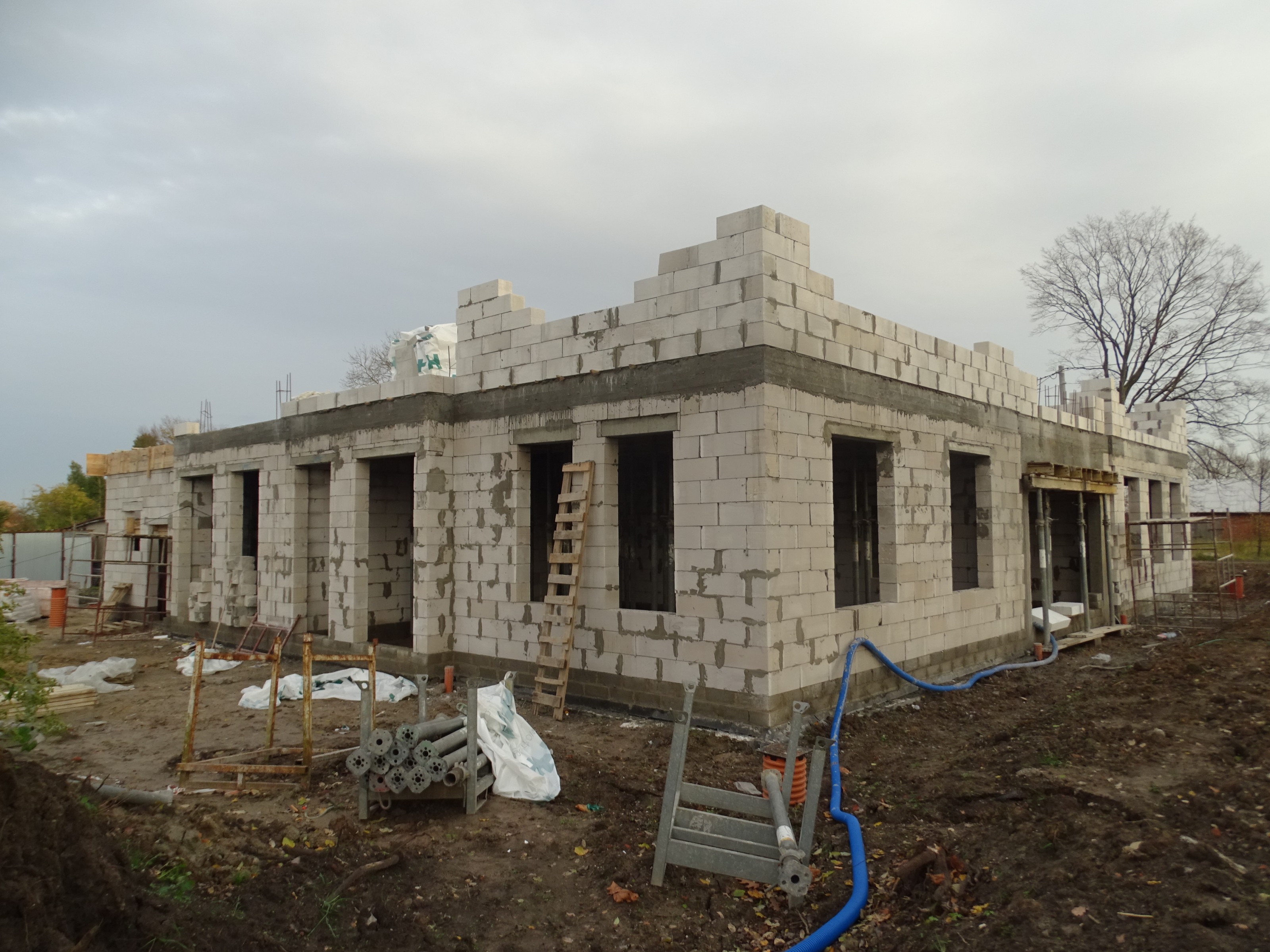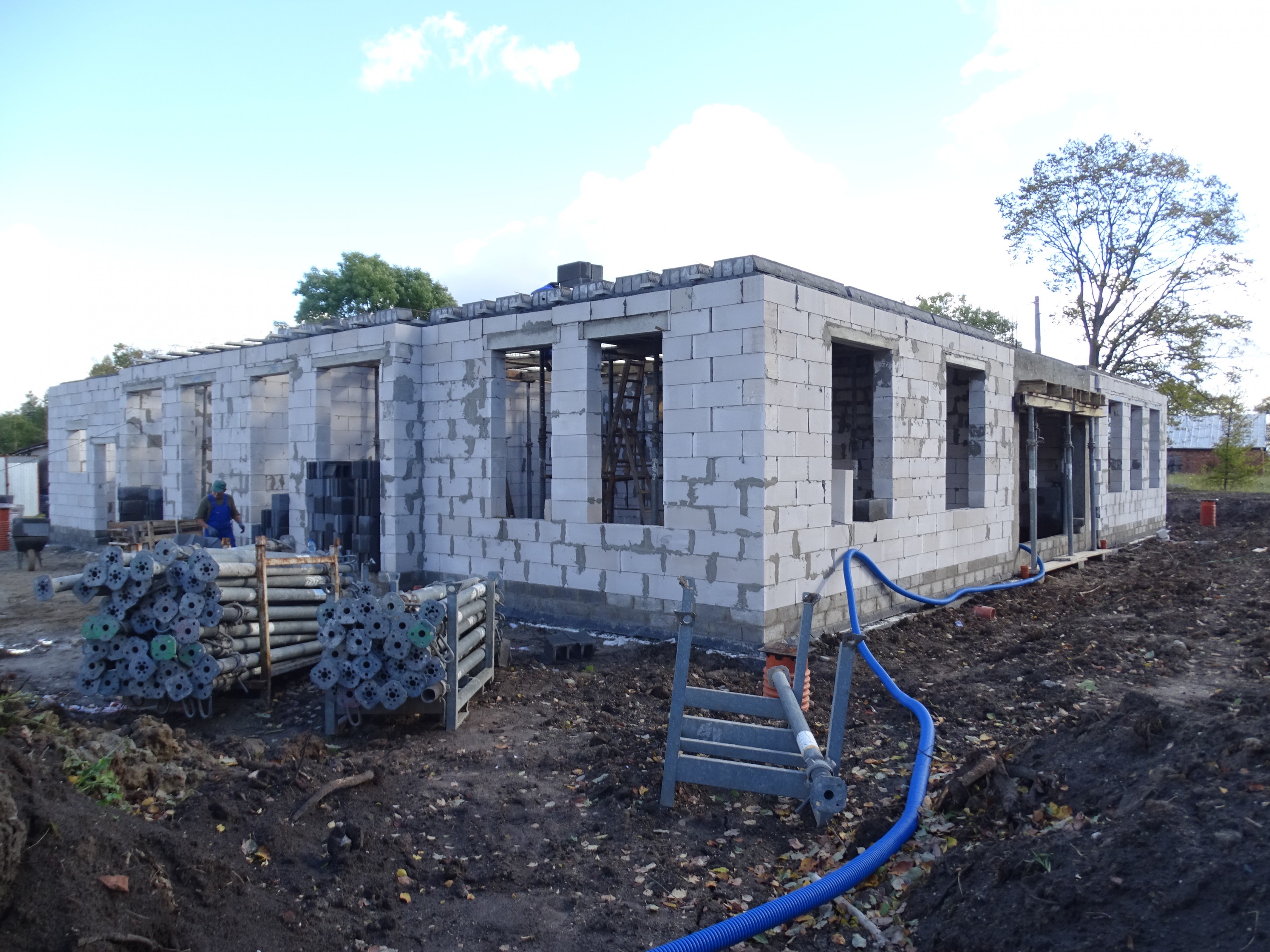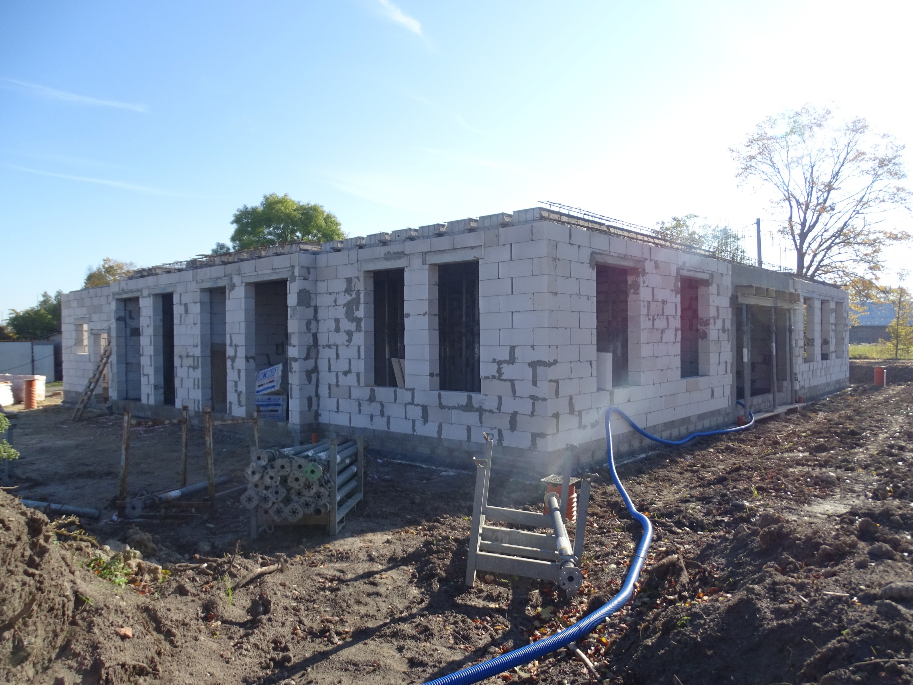 Dotychczas wykonano stan zerowy budynku i przyłącza sanitarne. Trwają prace związane z wykonaniem wymiennika gruntowego tzw. dolnego źródła, które zasilać będzie węzeł cieplny z gruntową pompą ciepła.