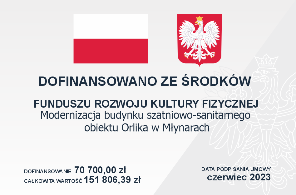 ze środków Ministerstwa Sportu i Turystyki w ramach Programu Modernizacji Kompleksów Sportowych „Moje Boisko – Orlik 2012” – Edycja 2022 w kwocie 70 700,00 zł.