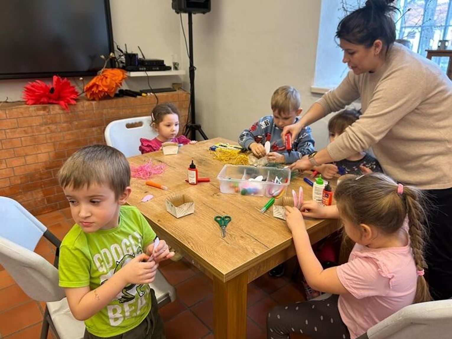 Przedszkolaki obejrzały wystawę pisanek, poprzez zabawę poznały obyczaje i symbole związane ze świętami wielkanocnymi, a na koniec wykonały koszyczek z zajączkiem na pisanki. Do przedszkola dzieci wróciły pełne pozytywnych wrażeń!