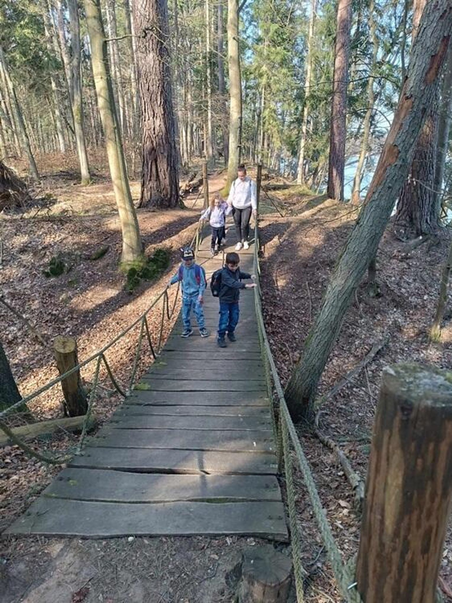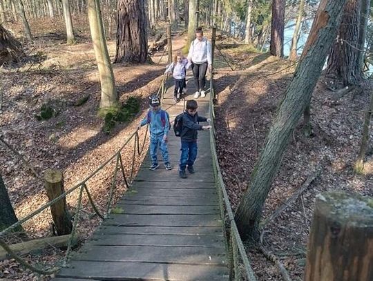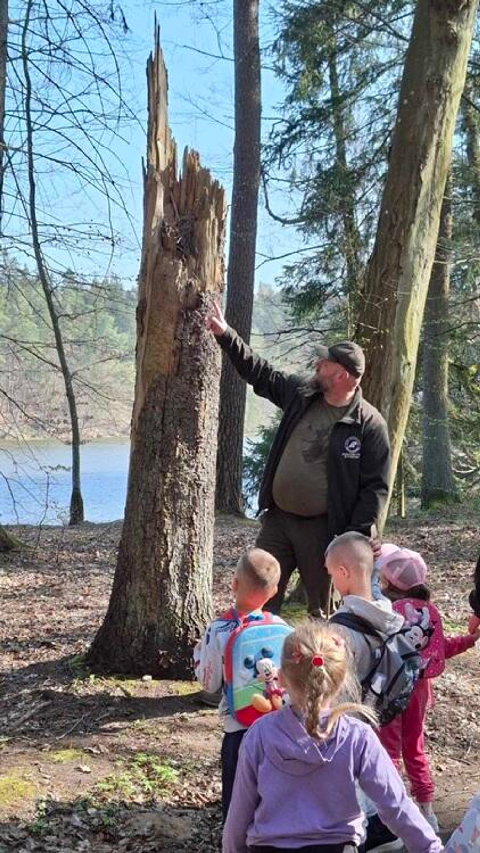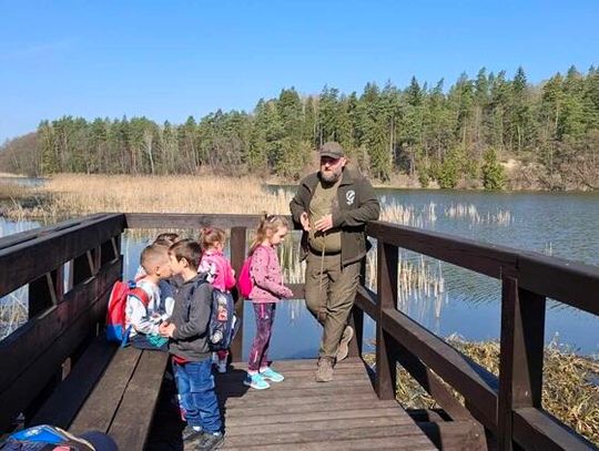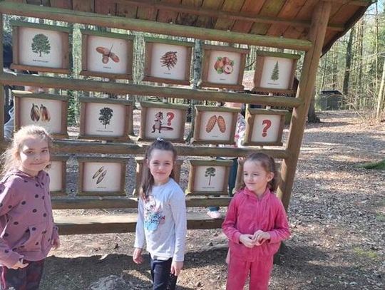 Naszym przewodnikiem był leśniczy p. Antoni Czyż. Przedszkolaki z każdym kolejnym krokiem zagłębiały się w las, który skrywa w sobie wiele tajemnic. Pan leśniczy w bardzo ciekawy i przystępny sposób opowiadał im m.in. o drzewach iglastych i liściastych, sposobach rozmnażania się drzew, warstwach lasu, a także o zwierzętach, które można spotkać w lesie.