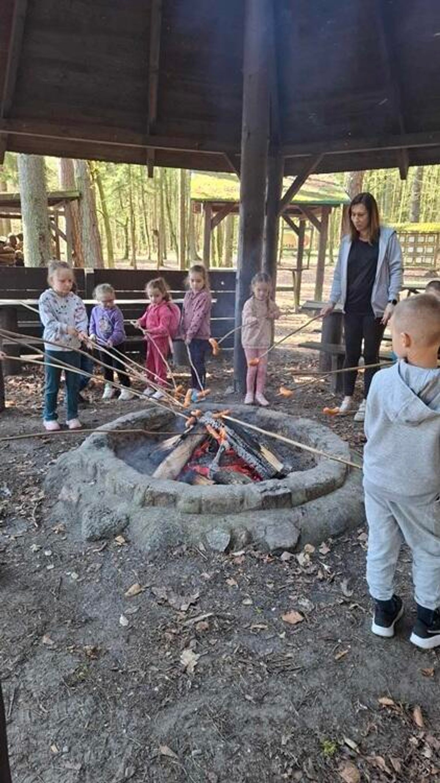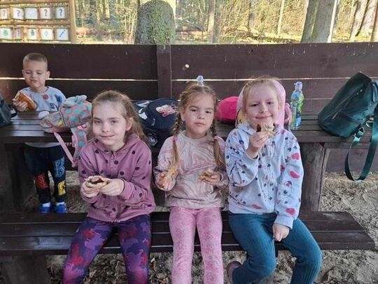 Wycieczka do Zaporowa miała nie tylko walory edukacyjne, ale także i zdrowotne - dzieci spędziły miło czas na świeżym powietrzu w otoczeniu pięknej, malowniczej przyrody leśnej. Po długim spacerze na "Jeżyki" czekało ognisko, przy którym mogły zasiąść i upiec pyszną kiełbaskę.