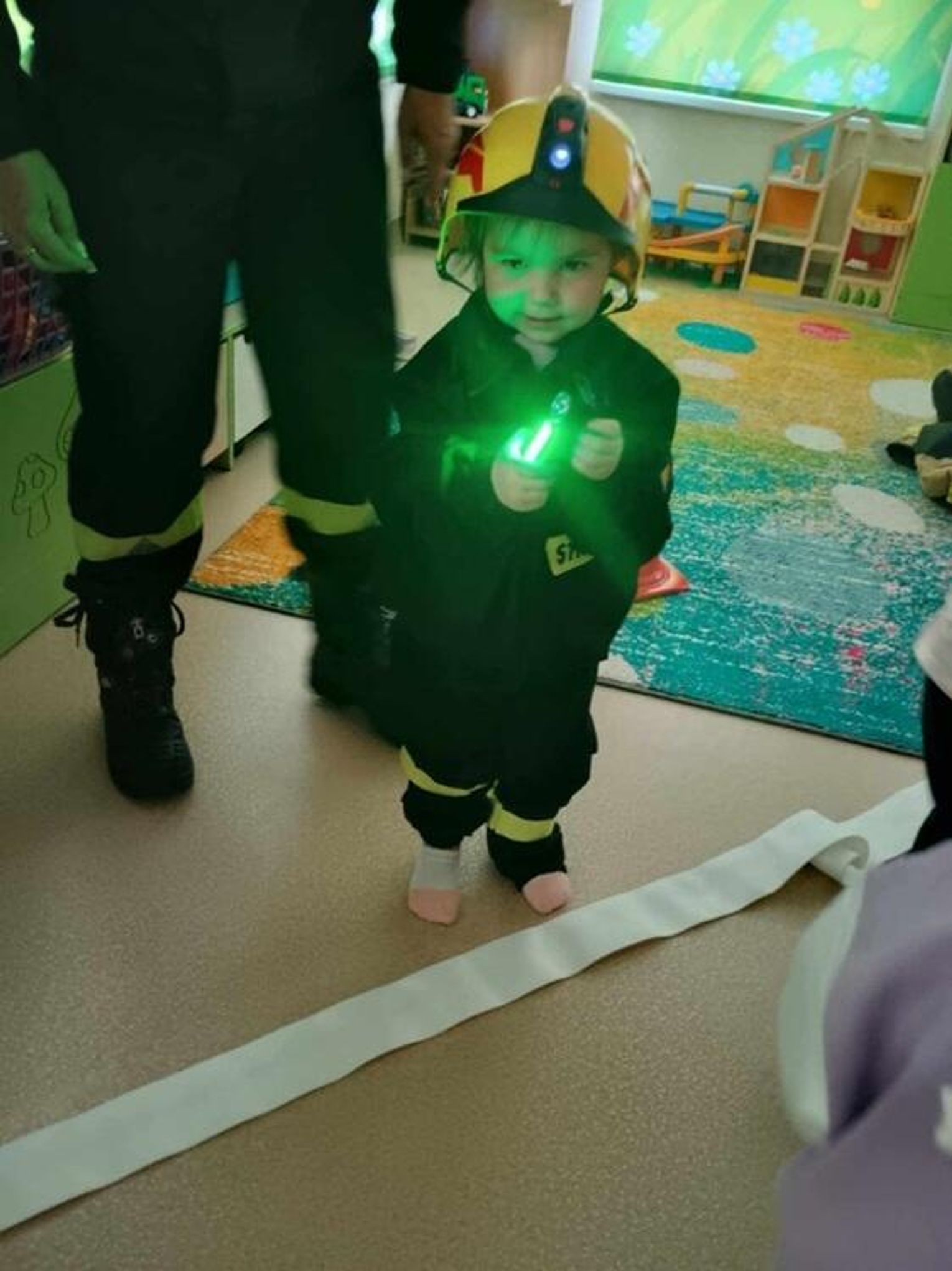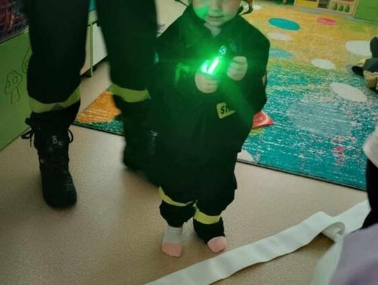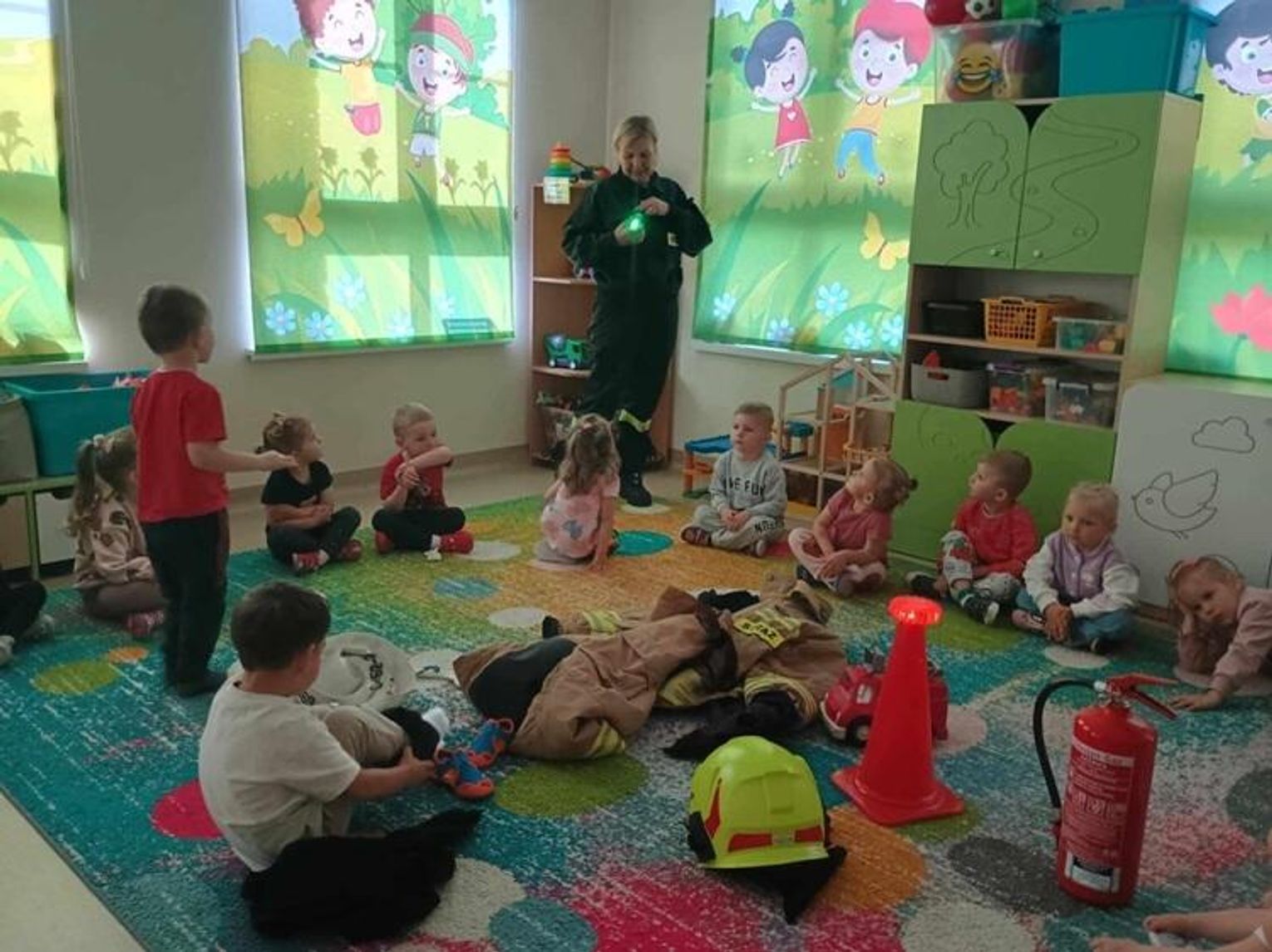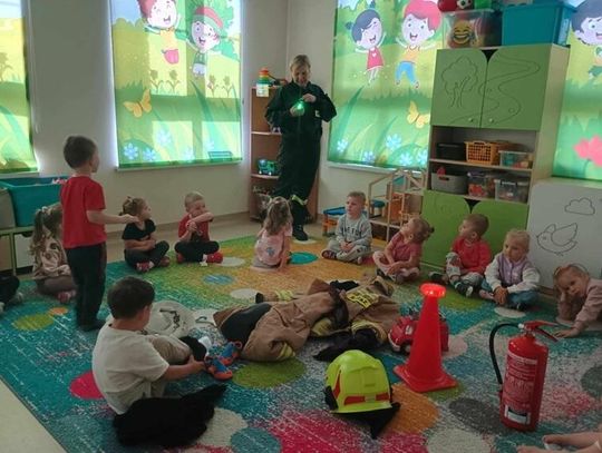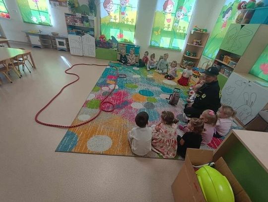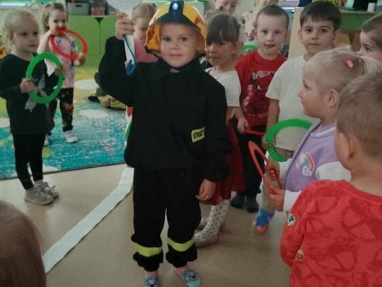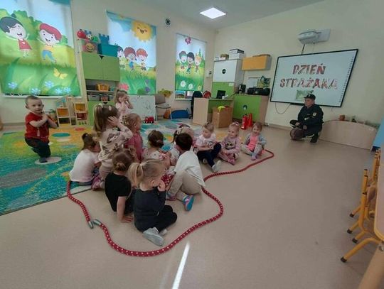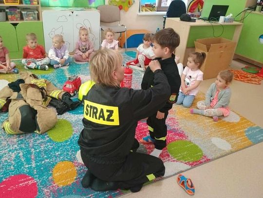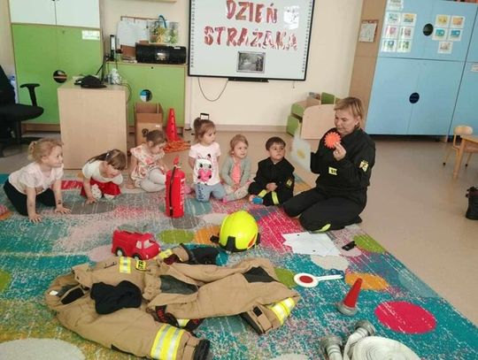 Z tej okazji w poniedziałek 5 maja grupę "Kotki" odwiedziła druhna OSP Stegny, która przybliżyła dzieciom rolę strażaków w społeczeństwie. Podczas zajęć przedszkolaki zobaczyły umundurowanie i sprzęt strażacki, m.in. ubranie koszarowe, ubranie specjalne, kask, flarę ostrzegawczą, lizak, prądownicę, wąż strażacki, latarkę ręczną sygnalizacyjną. "Kotki" dowiedziały się także, co to jest "korytarz życia" i dlaczego jest tak ważny dla służb ratunkowych.