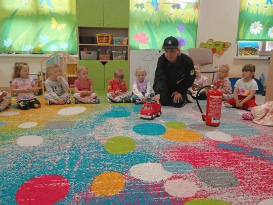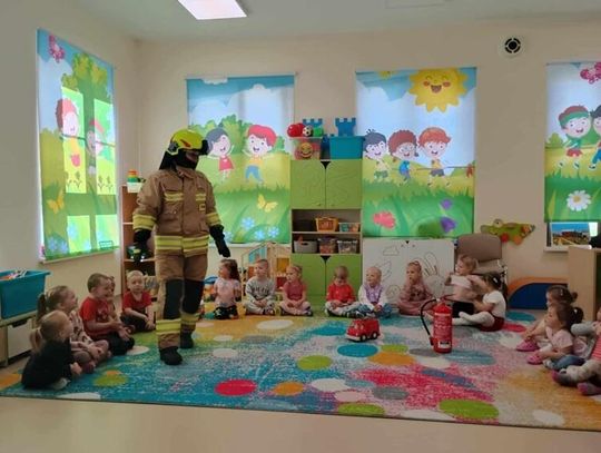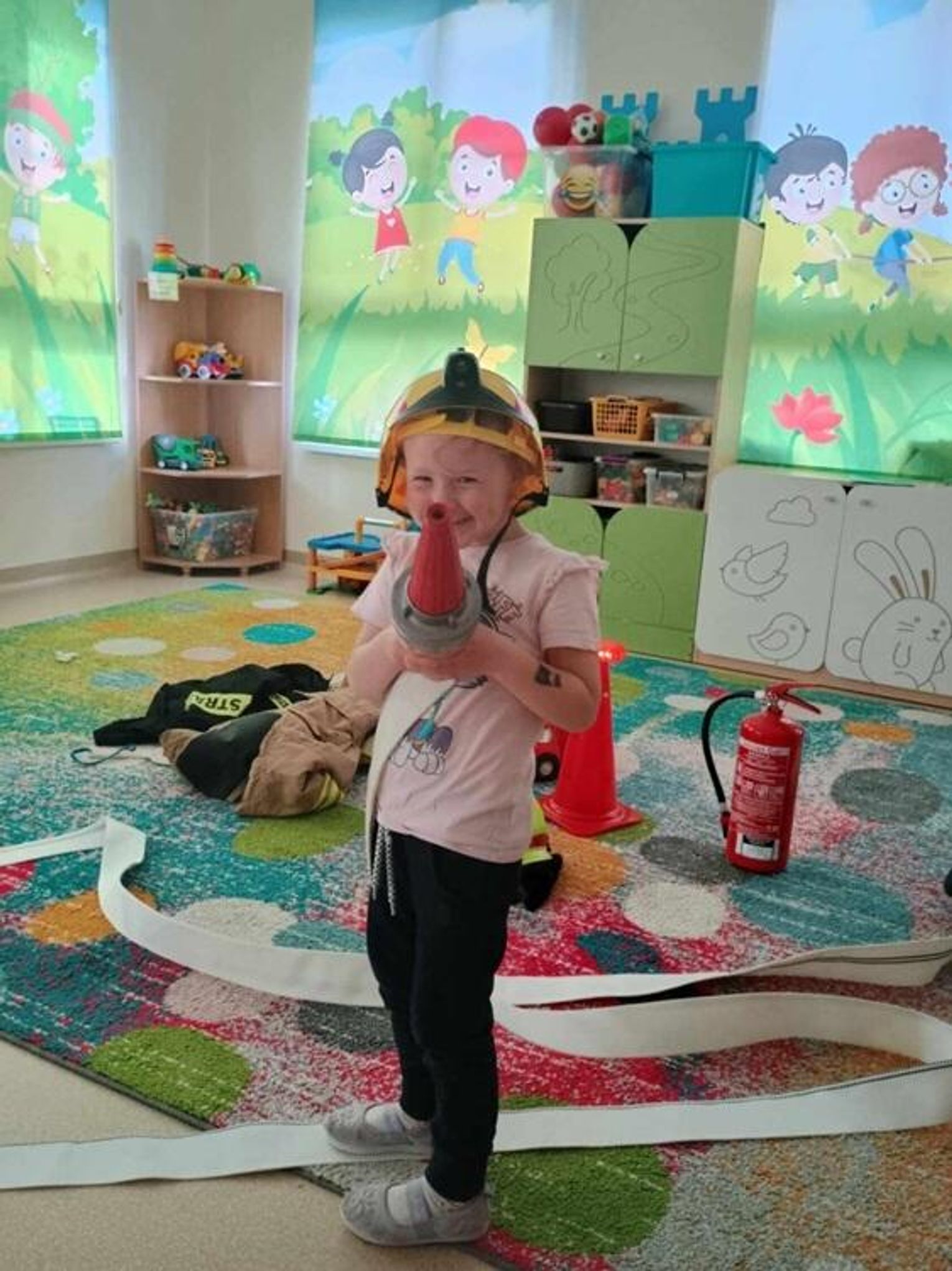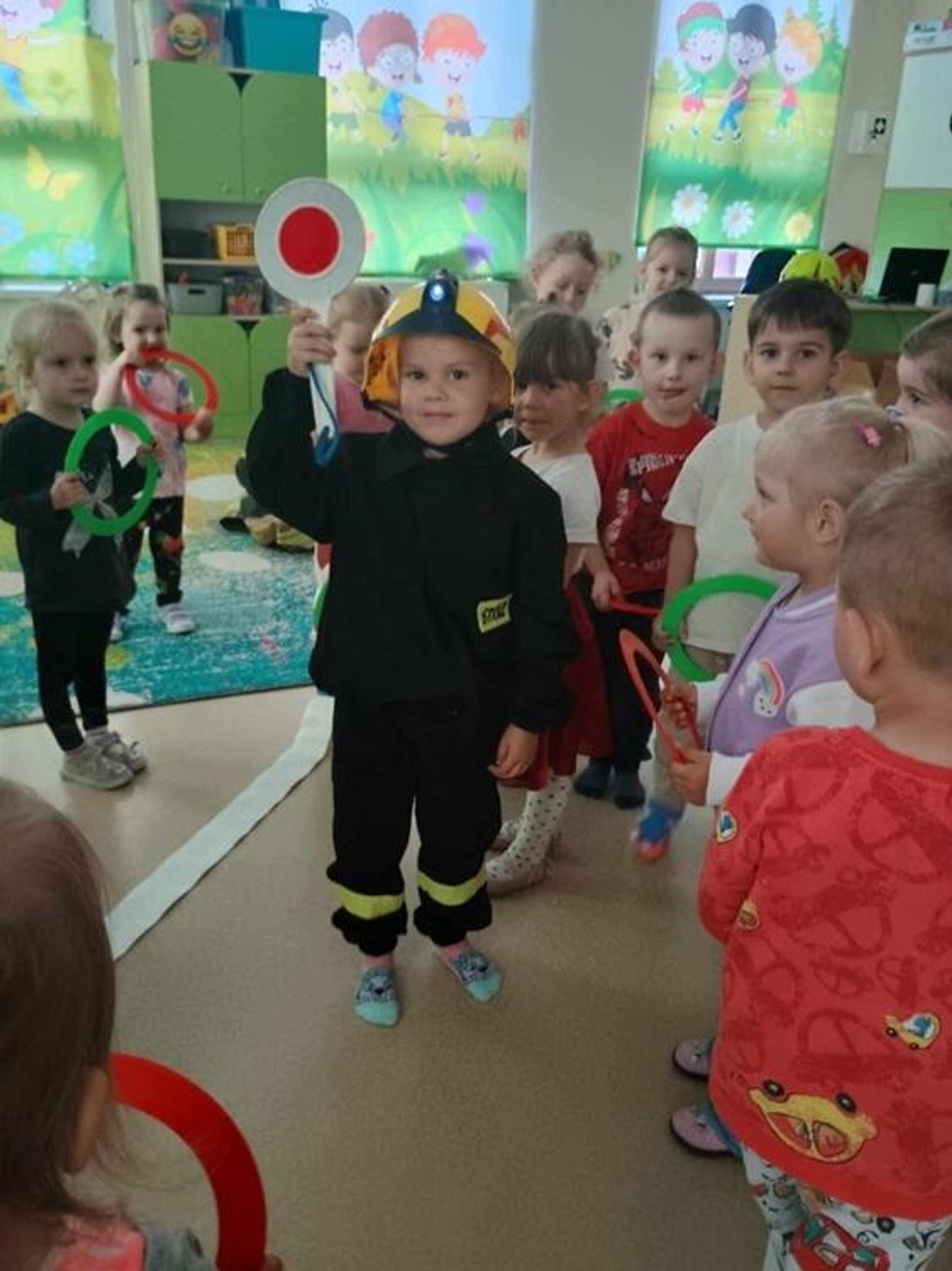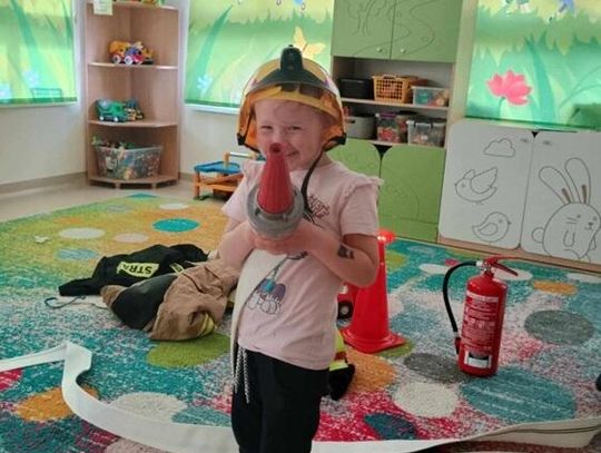 Z tej okazji w poniedziałek 5 maja grupę "Kotki" odwiedziła druhna OSP Stegny, która przybliżyła dzieciom rolę strażaków w społeczeństwie. Podczas zajęć przedszkolaki zobaczyły umundurowanie i sprzęt strażacki, m.in. ubranie koszarowe, ubranie specjalne, kask, flarę ostrzegawczą, lizak, prądownicę, wąż strażacki, latarkę ręczną sygnalizacyjną. "Kotki" dowiedziały się także, co to jest "korytarz życia" i dlaczego jest tak ważny dla służb ratunkowych.