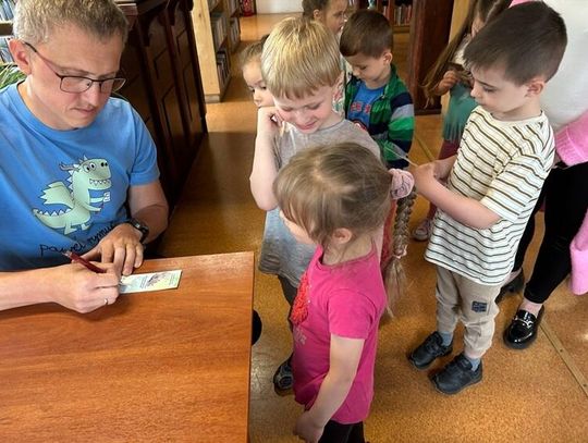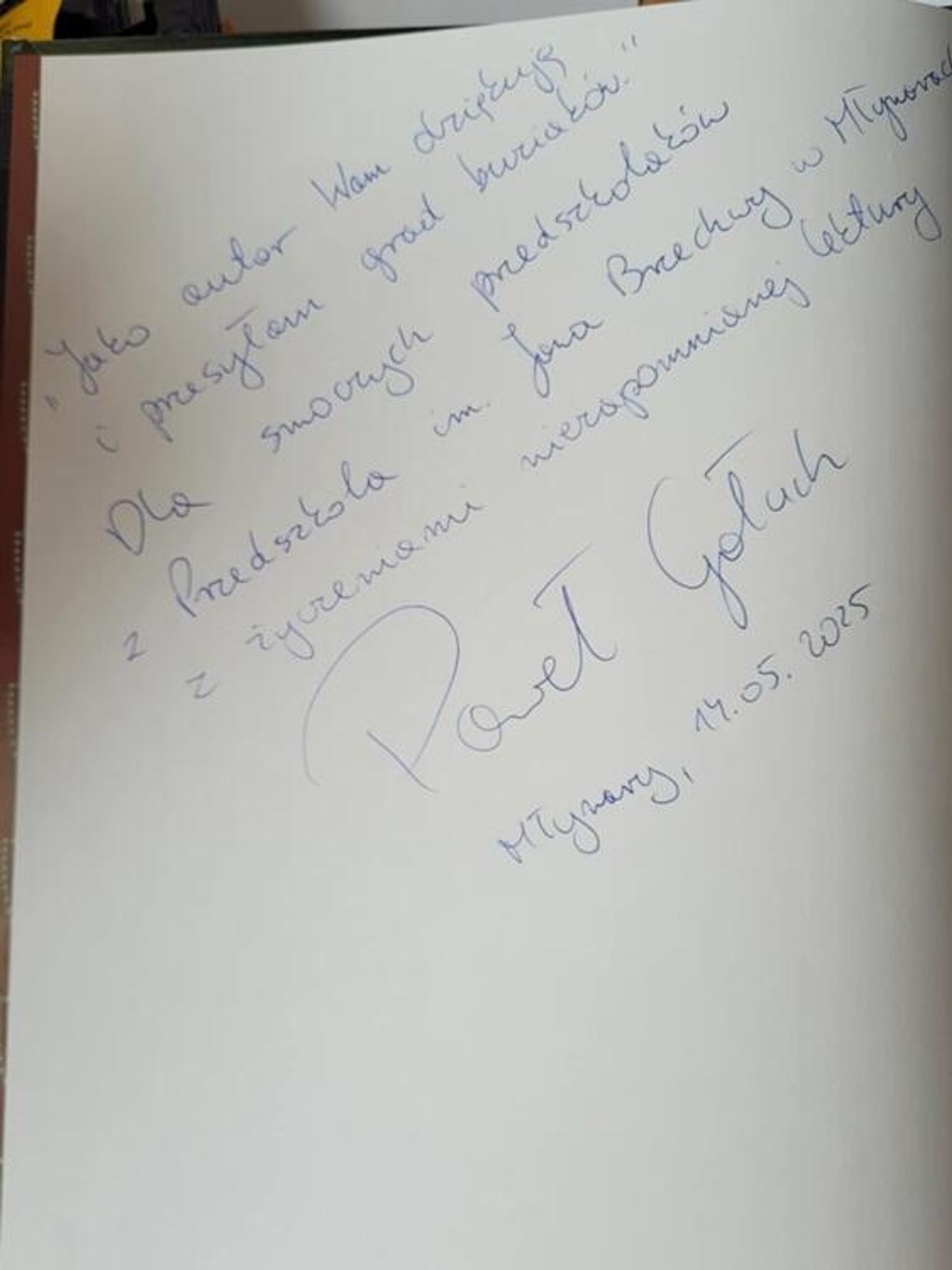 Każde dziecko otrzymało też od Pana Pawła zakładkę do książki z autografem, aby skończone miejsce czytania zaznaczać zakładką, a nie kotletem!