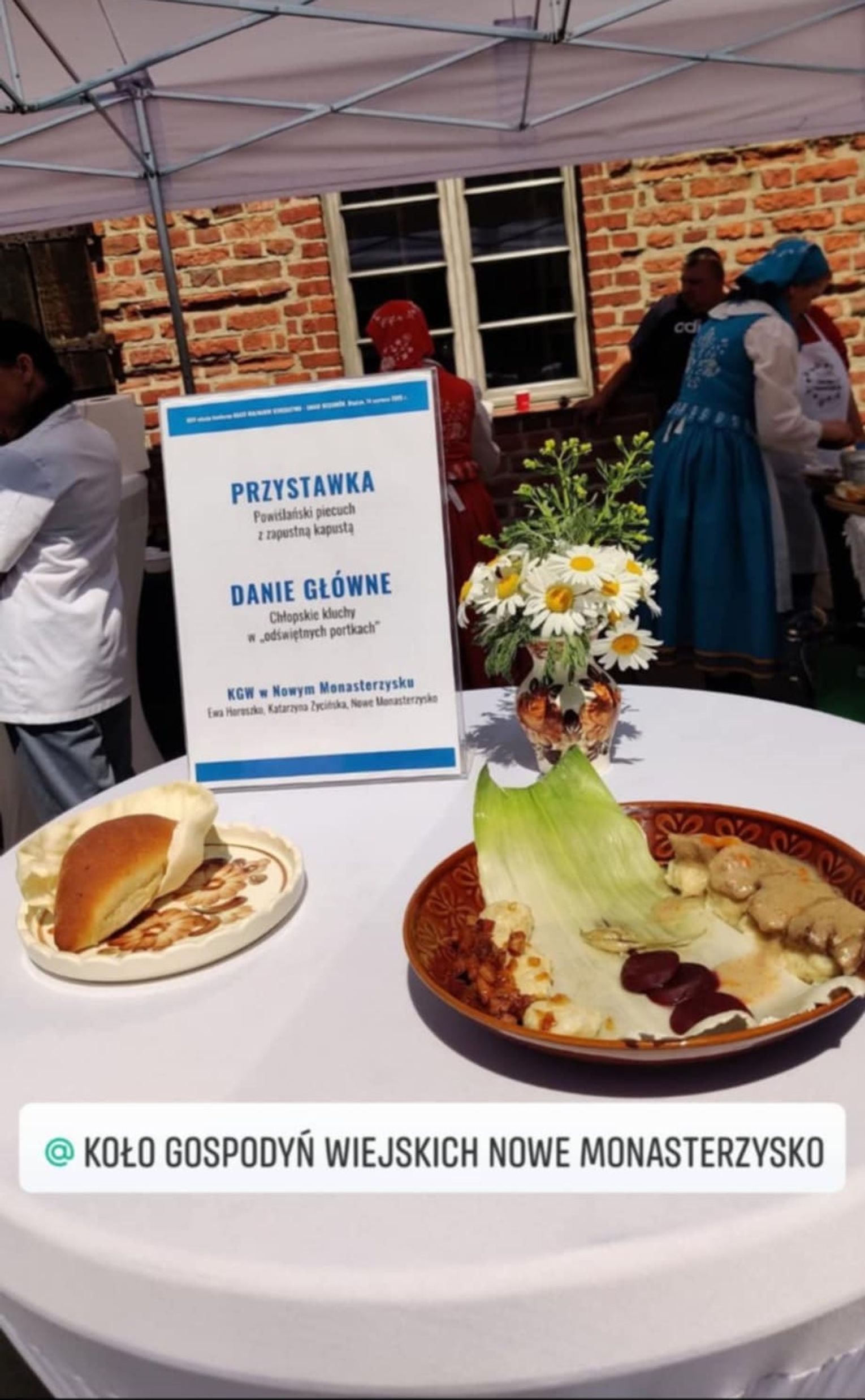 W sobotę 14.06.2025 r. Koło Gospodyń Wiejskich z Nowego Monasterzyska brało udział w konkursie na potrawę regionalną "Nasze Kulinarne Dziedzictwo-Smaki Regionów" - zorganizowanym przez Dziedzictwo Kulinarne Warmia Mazury i Polska Izba Produktu Regionalnego i Lokalnego. Koło reprezentowało region Powiśle, Gminę Młynary.