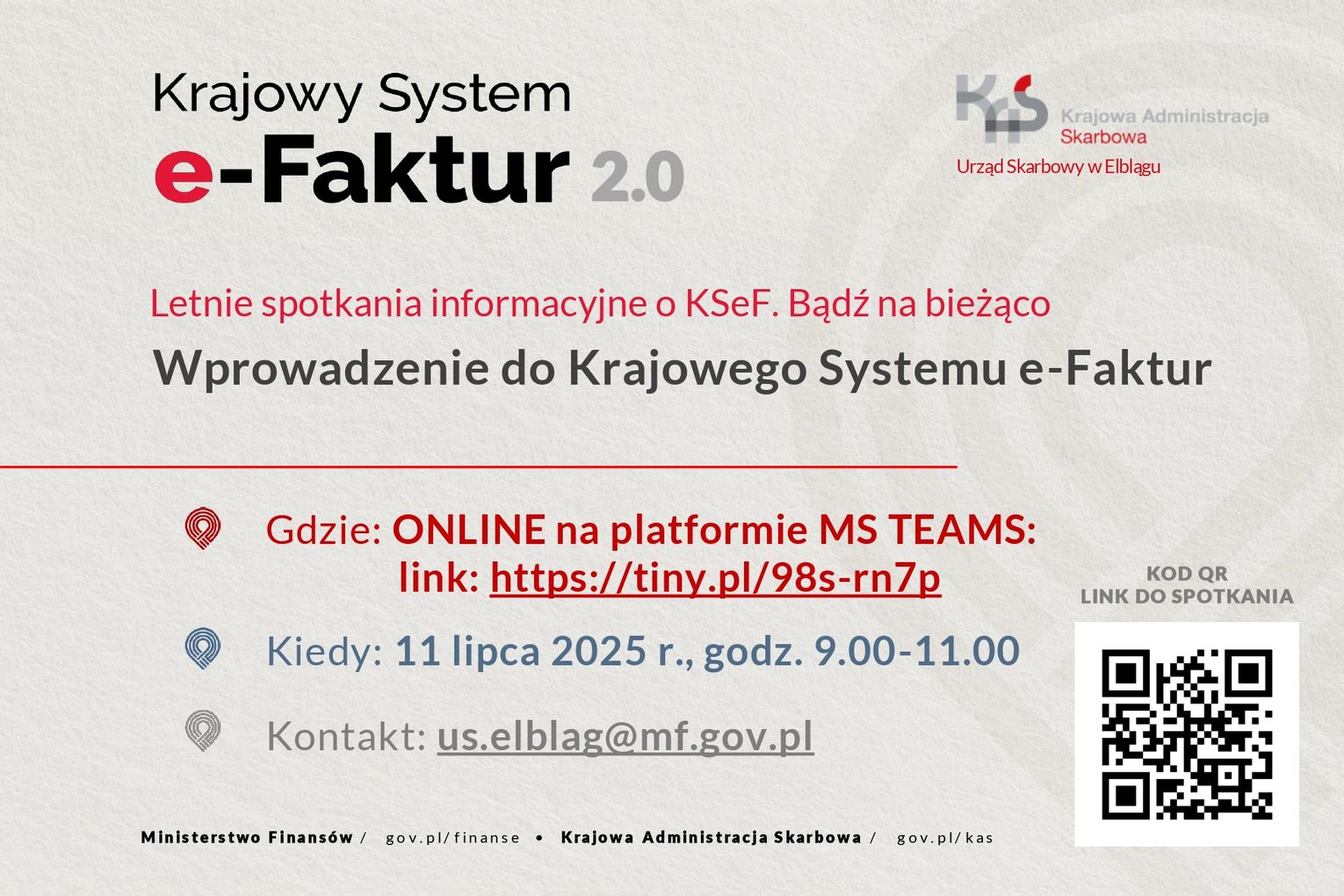 Urząd Skarbowy w Elblągu informuje, że rusza wakacyjna akcja pt.: „Letnie spotkania informacyjne o KSeF. Bądź na bieżąco”.