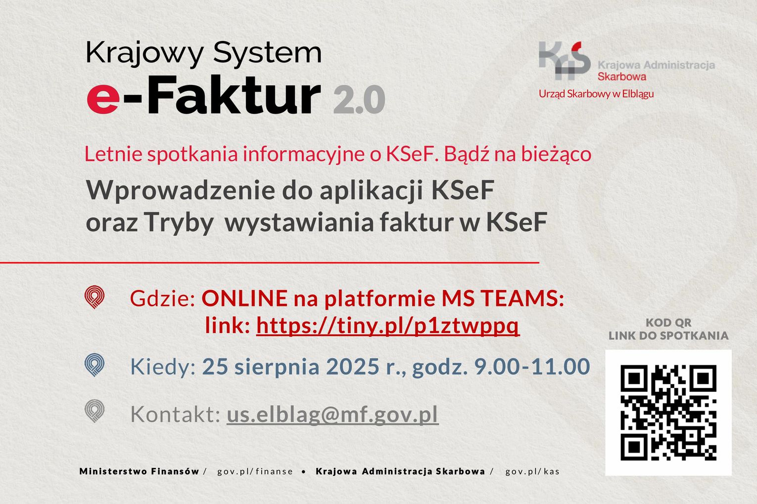 Spotkanie on-line dotyczące Krajowego Systemu e-Faktur 2.0 odbędzie się 25 sierpnia 2025 roku w godzinach od 9:00 do 11:00.