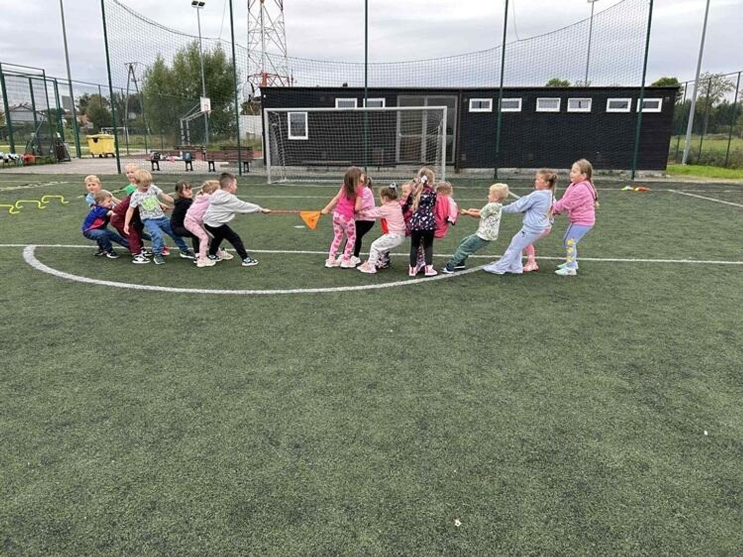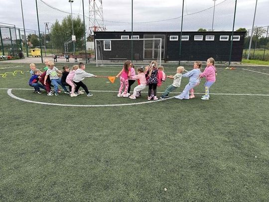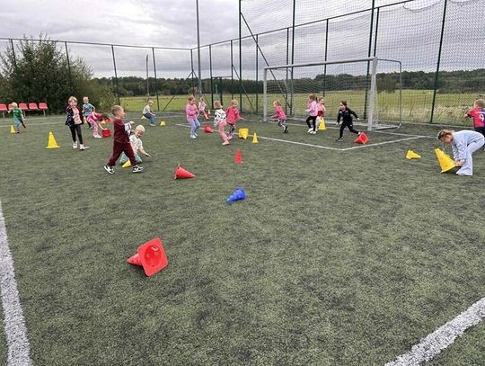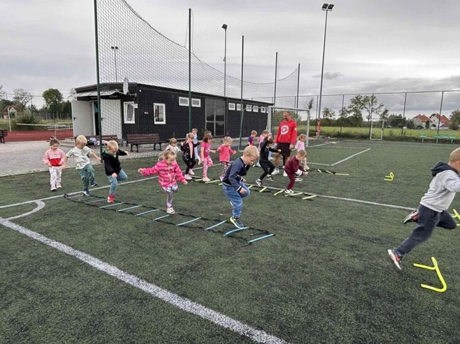 Tak ten tydzień rozpoczęły "Zajączki", które z trenerem - panem Maciejem Rudzińskim, ćwiczyły na Orliku. Było to połączenie ruchu ze świetną zabawą, gdyż aktywność fizyczna poprawia samopoczucie, a także zwiększa poziom energii i koncentracji.