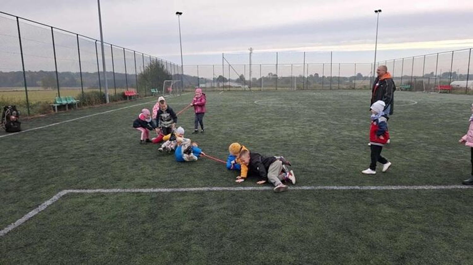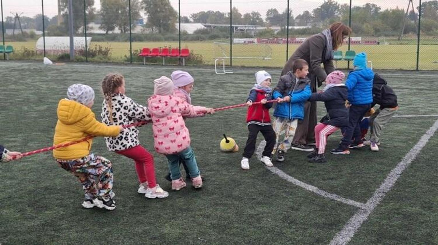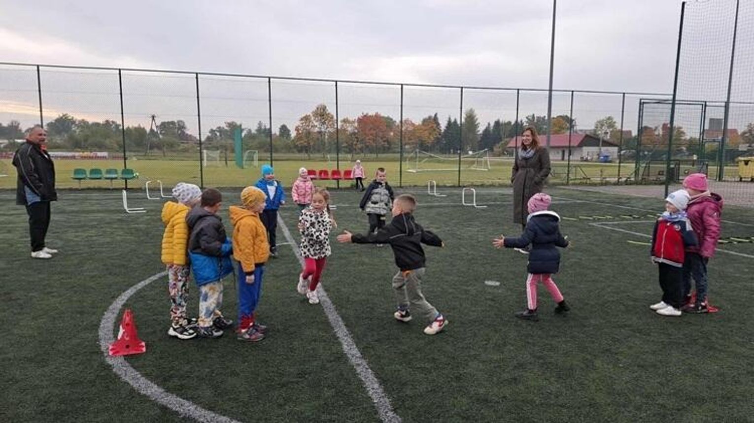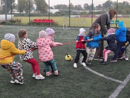 W środę 8 października grupa "Jeżyki" po raz kolejny mogła uczestniczyć w zajęciach sportowych na Orliku, które poprowadził pan Maciej Rudziński. Przedszkolaki miały do pokonania tor przeszkód, przeciągały linę, uczestniczyły w zabawach z piłką i innych konkurencjach sportowych Dzieci świetnie sobie poradziły z tak intensywnym treningiem - wróciły do przedszkola zmęczone, ale bardzo zadowolone.