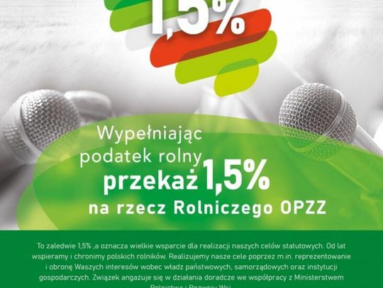 🗓️ 15 listopada 2025 r. upływa termin składania deklaracji dotyczących przekazania 1,5% podatku rolnego na rzecz Rolniczego OPZZ RiOR.