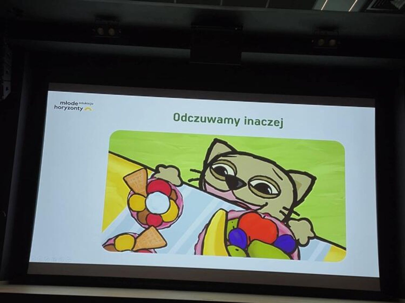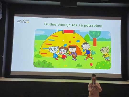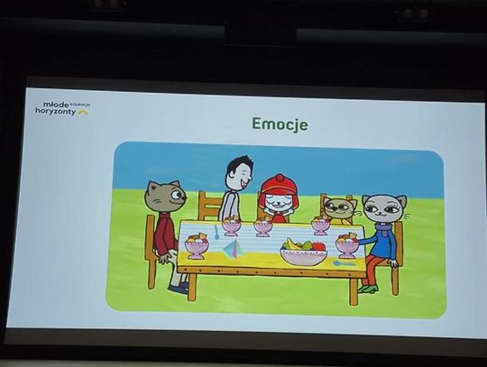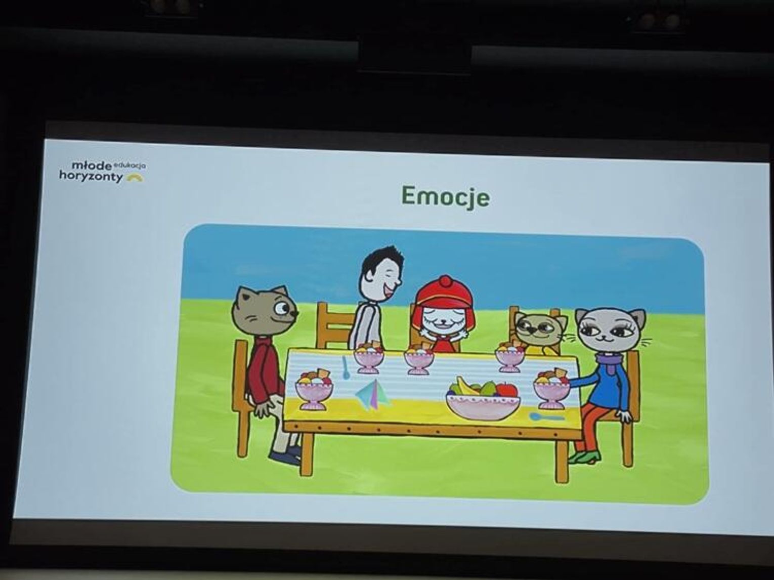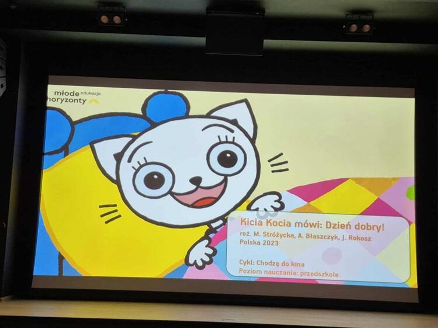 Pierwsza bajka w tym cyklu to "Kicia Kocia mówi: Dzień dobry", której projekcję poprzedziła prelekcja poprowadzona przez panią Justynę Rataj. Przedszkolaki miały okazję porozmawiać o tym, jakie emocje znają, jak wyraża je nasza mimika i nasze zachowanie, a także o tym, że można nasze emocje podzielić na pozytywne, jak i negatywne, ale żadna z nich nie jest zła - należy po prostu się nauczyć, jak sobie z nimi radzić.