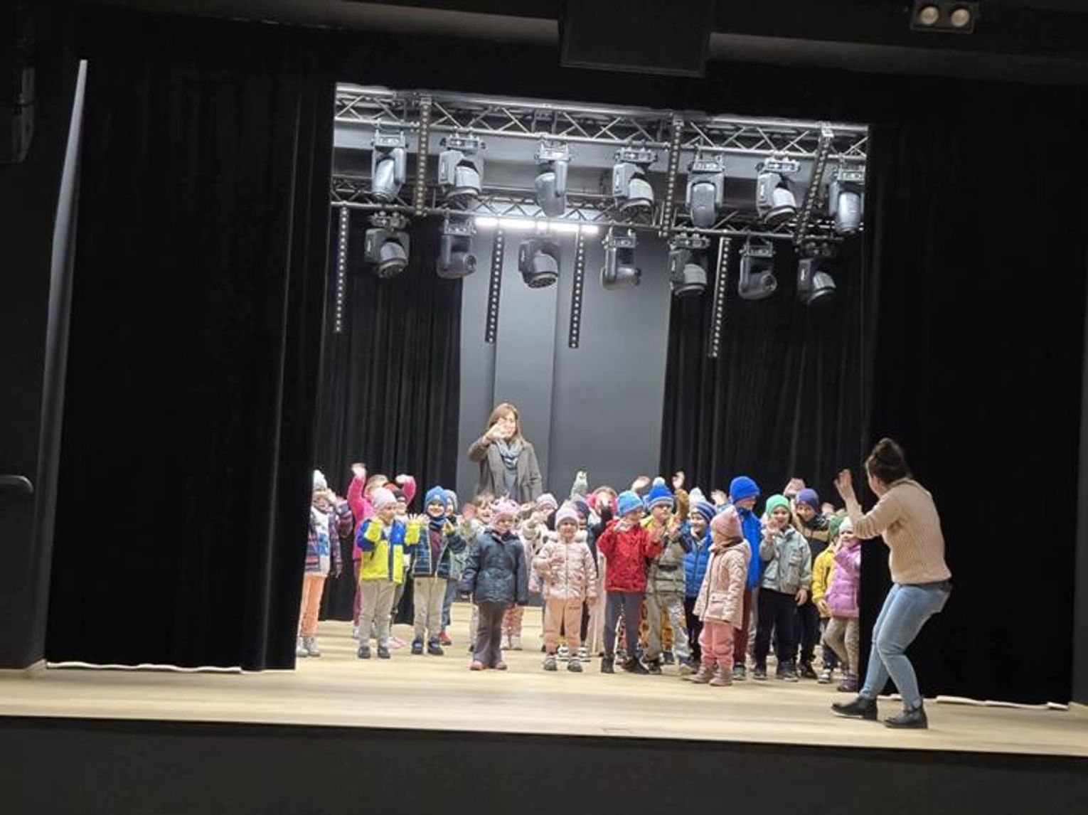 Po seansie dzieci miały okazję zwiedzić pomieszczenia znajdujące się za sceną oraz zobaczyć, jak wygląda kino z perspektywy występujących!