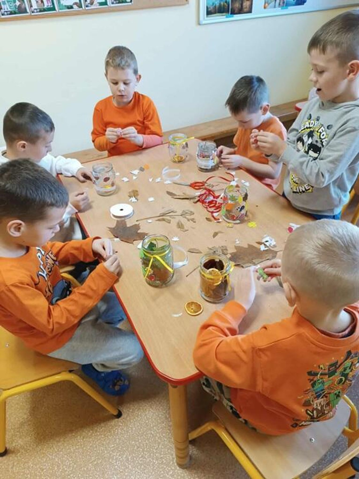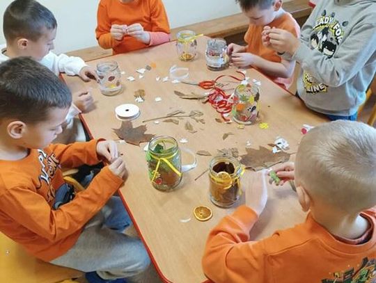 Ze wszystkich dyń, które zostały przyniesione przez dzieci, stworzyliśmy piękny jesienny kącik do sesji zdjęciowej. Wykonaliśmy również piękne jesienne lampiony ze słoików i darów jesieni, które dzieci zabrały do domu.