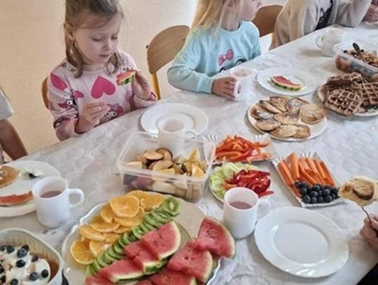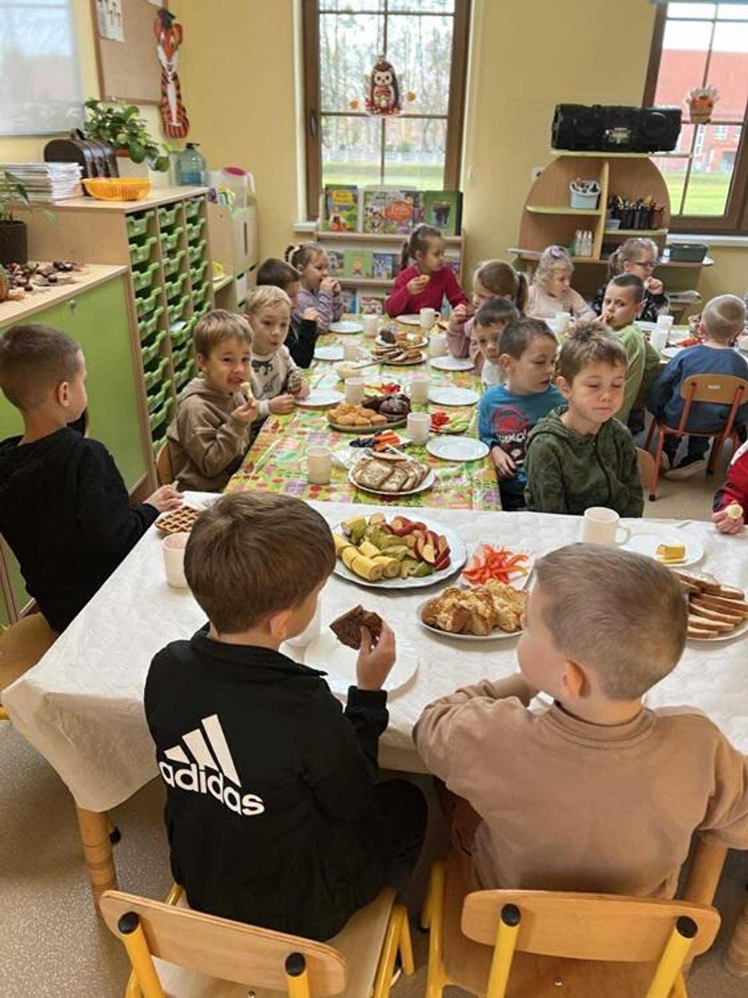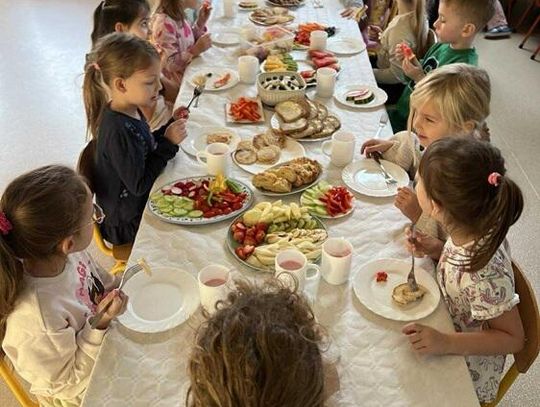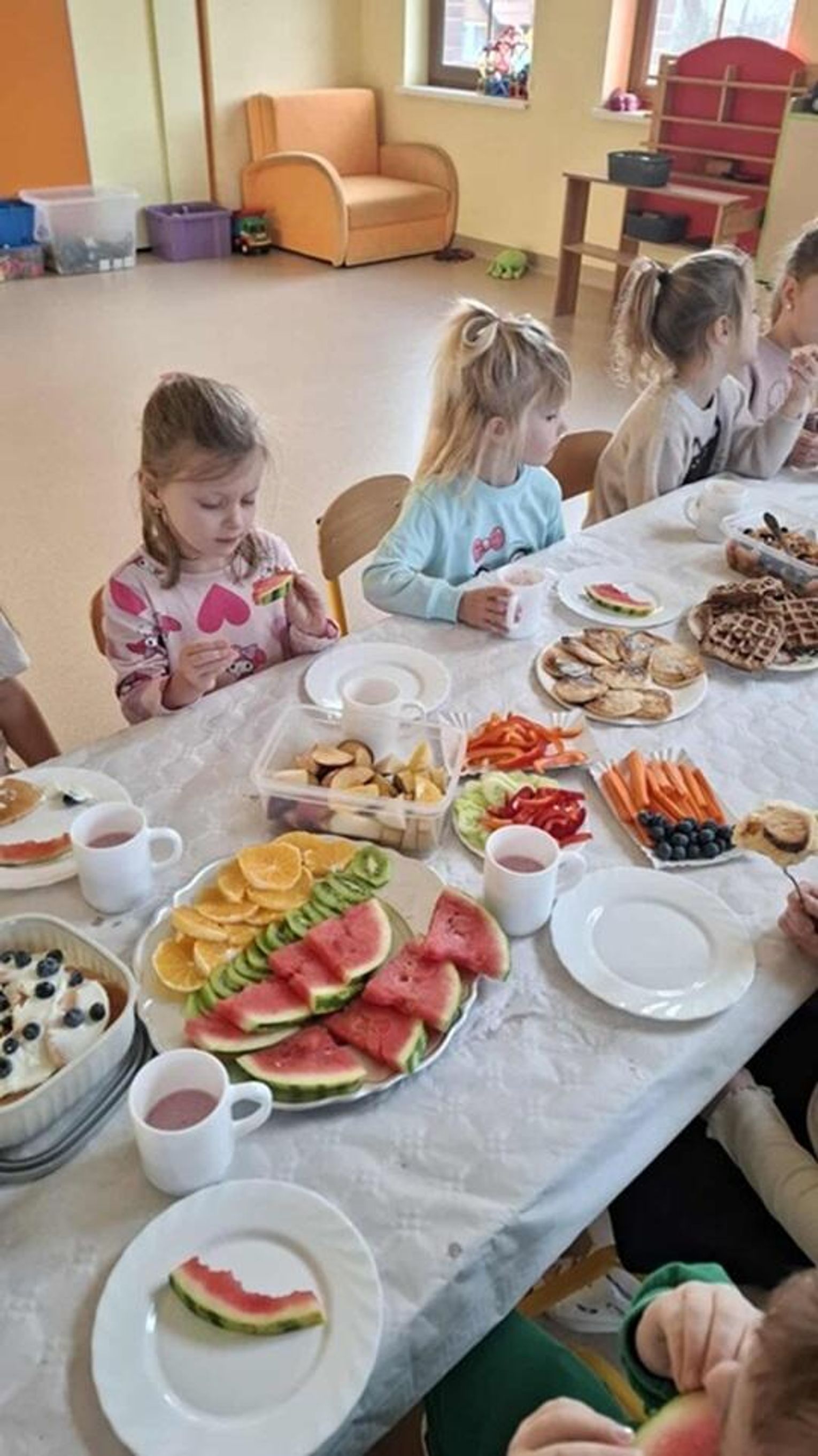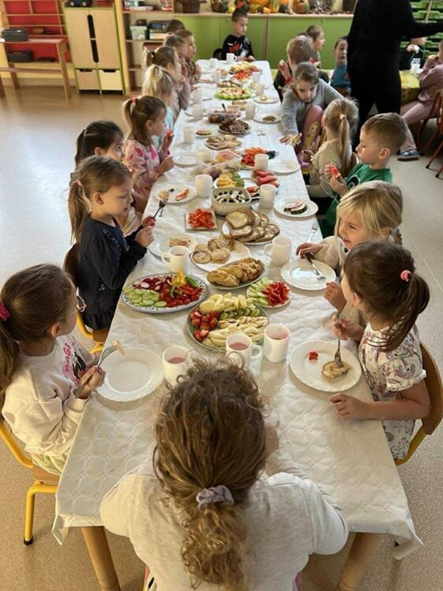 W tym szczególnym dniu w przygotowaniu śniadania dla dzieci z grup: "Tygryski" i "Jeżyki" wsparli pracowników przedszkola rodzice. Na stołach było zdrowo, kolorowo i naprawdę różnorodnie: nie zabrakło warzyw i owoców (świeżych i suszonych), domowego chleba, naleśników, placuszków z jabłkiem, przetworów z domowej spiżarni, a także koktajli, sałatek owocowych oraz chlebka ziołowego. Każdy znalazł coś pysznego i zdrowego dla siebie.