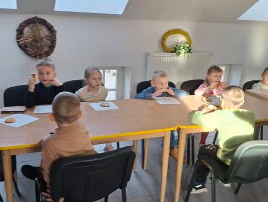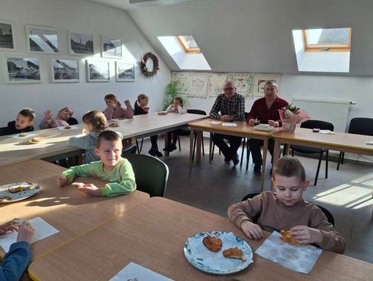 Z tej okazji grupa "Jeżyki" wybrała się do zaprzyjaźnionego Klubu Gospodyń Wiejskich w Młynarach, aby złożyć serdecznie życzenia naszym Seniorom. Przedszkolaki podarowały piękne, własnoręcznie przygotowane laurki oraz kwiaty i słodkości. "Jeżyki" zaśpiewały również na cześć Seniorów tradycyjne sto lat oraz jesienną piosenkę, której nauczyły się w przedszkolu.