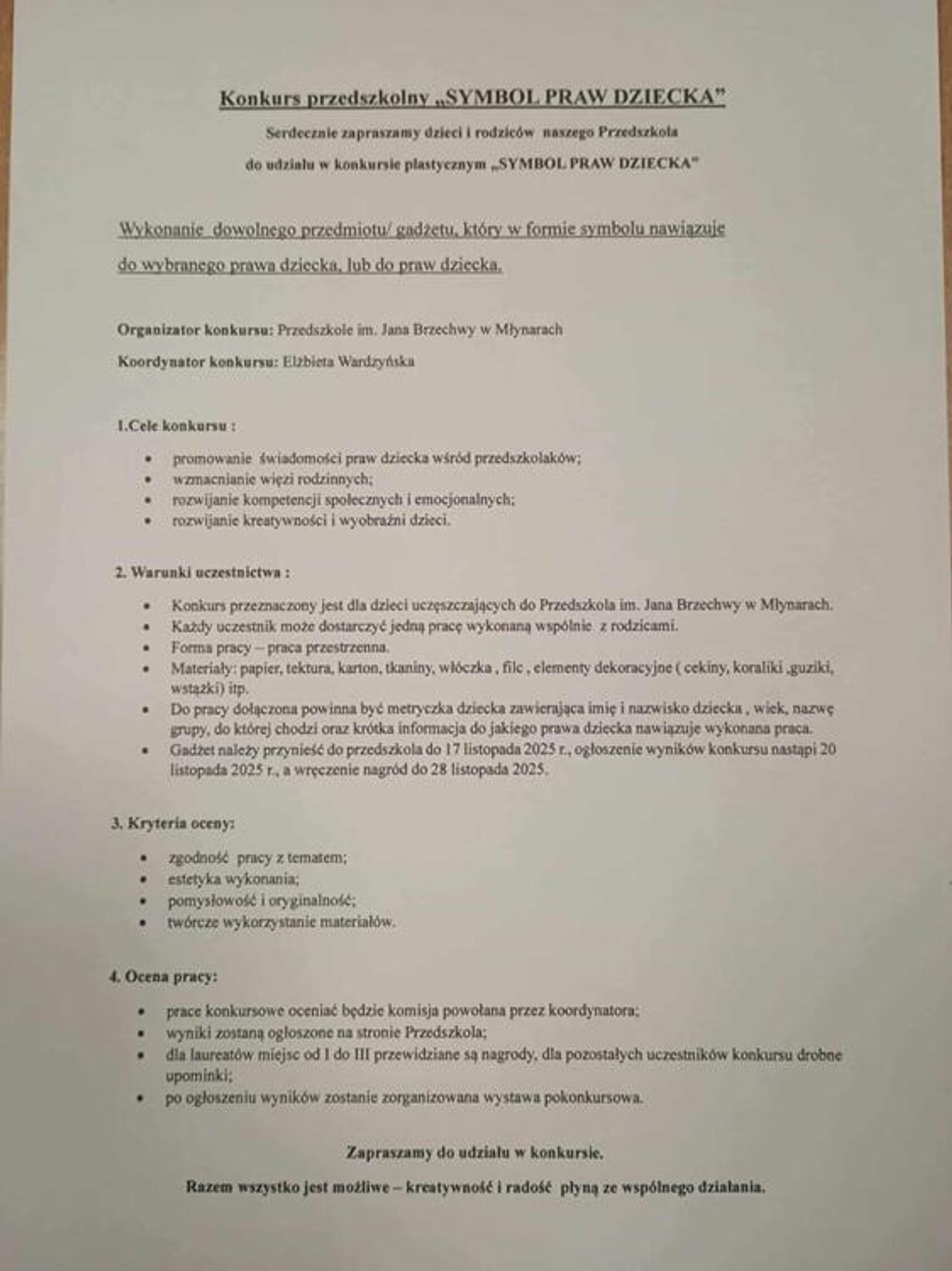 Przypominamy o organizowanym w naszym przedszkolu konkursie pod nazwą "Symbol Praw Dziecka".