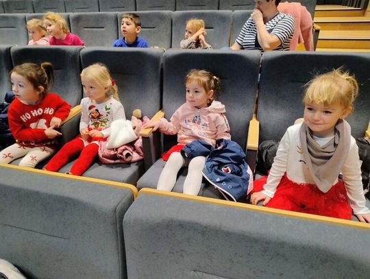 W poniedziałek 8 grudnia dzieci z grupy "Sówki " i "Kotki", aby jeszcze bardziej umilić sobie ten przedświąteczny czas, wybrały się do młynarskiego kina na bajkę pt. "Święty Mikołaj dla wszystkich". To było pierwsze takie wyjście naszej najmłodszej grupy "Sówki " i dzieci spisały się wzorowo!