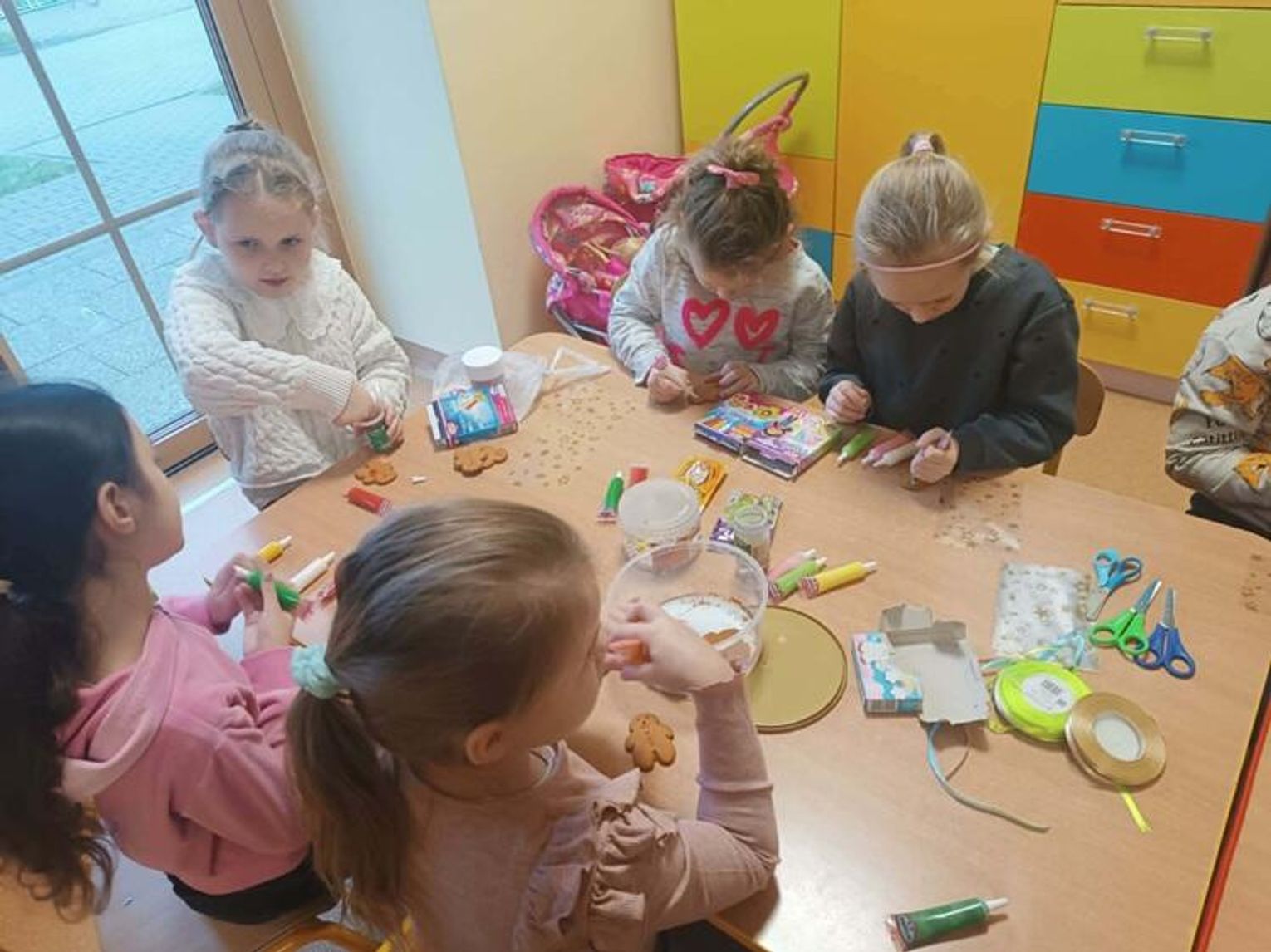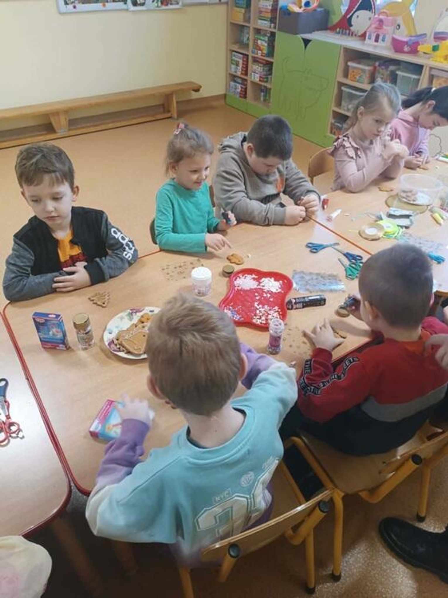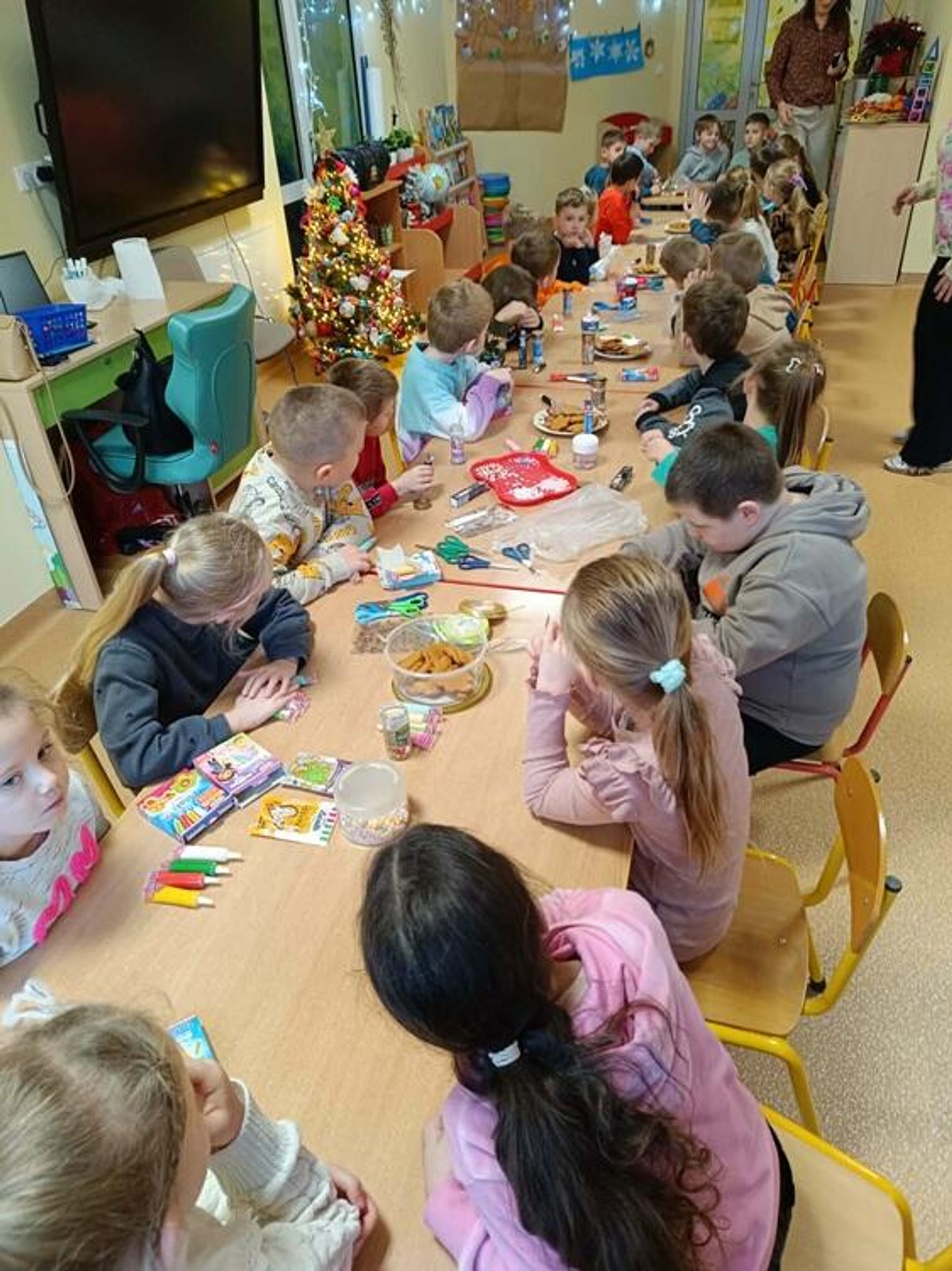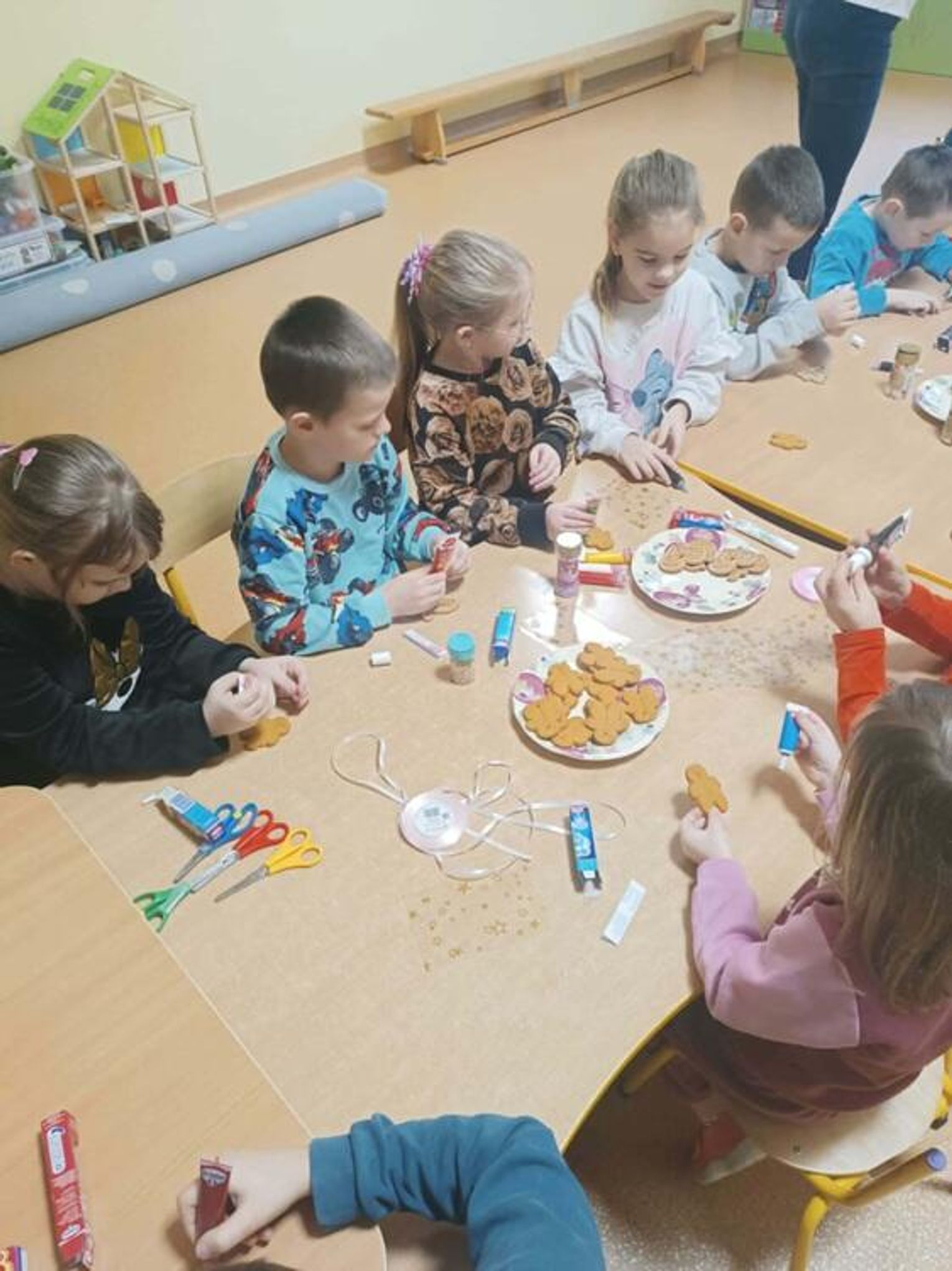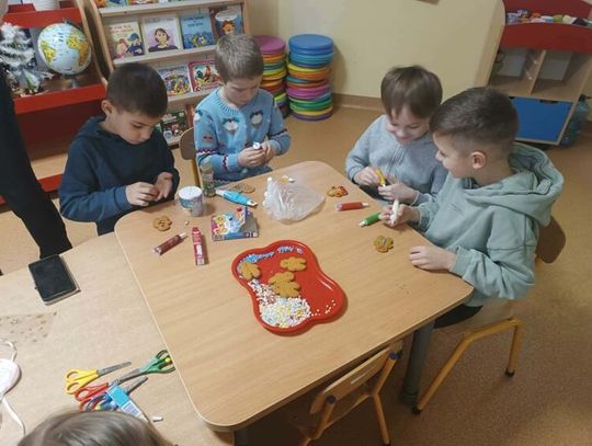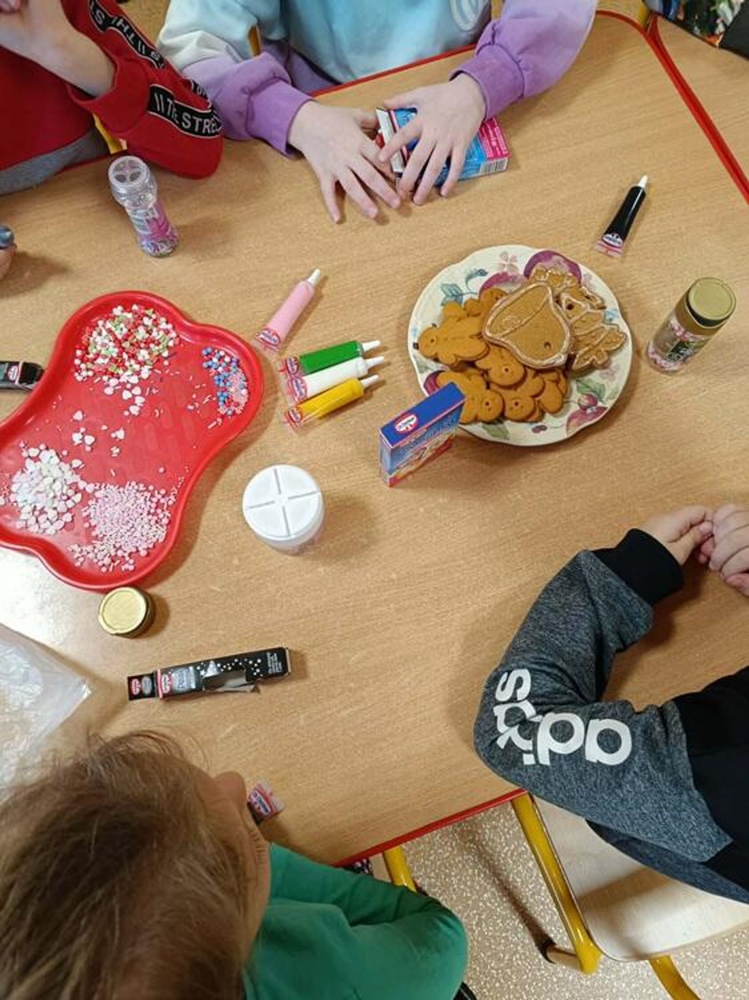Dekorowanie pierników to tradycja, która nie tylko wprowadza dzieci w świąteczny nastrój, ale również rozwija ich kreatywność i zdolności manualne. W przedszkolu ta radosna aktywność staje się niezapomnianym wydarzeniem, łączącym zabawę z nauką. Z tej też okazji we wtorek 16 grudnia grupę "Jeżyków" odwiedziła klasa 1B z wychowawczynią - p. A. Zalewską, aby wspólnie móc poczuć już namiastkę Świąt.