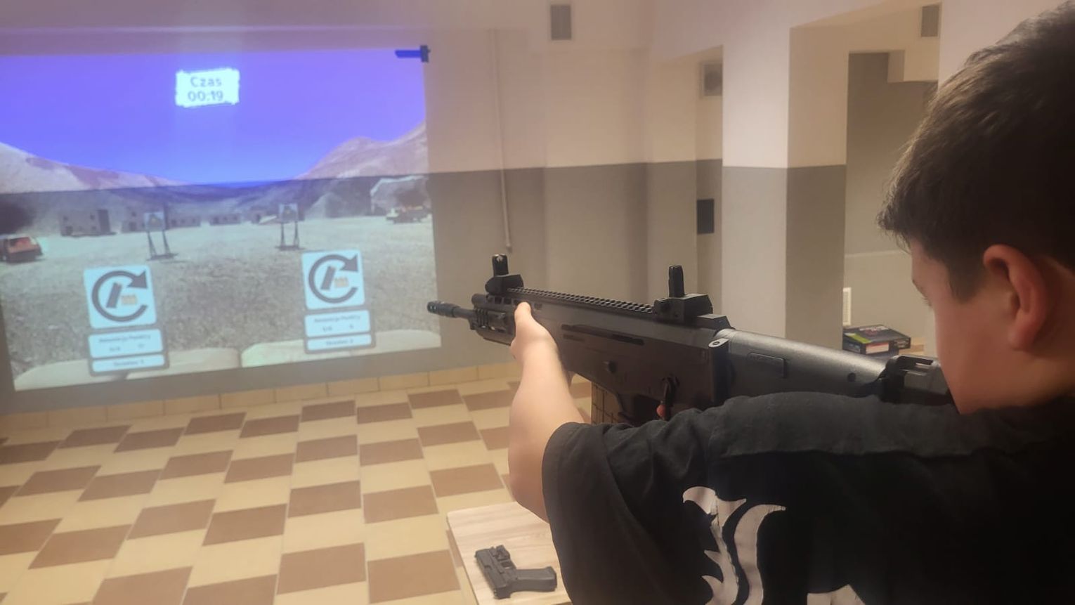 Wirtualna strzelnica to zestaw urządzeń, który pozwala ćwiczyć strzelanie bez użycia ostrej amunicji. Składa się z replik broni, modułów laserowych, ekranu oraz komputera z odpowiednim oprogramowaniem. Gazowe repliki broni działają w sposób zbliżony do prawdziwej broni – mają odrzut i realistyczną pracę spustu. W momencie strzału moduł laserowy wysyła krótki impuls światła, który trafia w wirtualny cel. System rejestruje trafienie i pokazuje wynik na ekranie, dzięki czemu można bezpiecznie i w prosty sposób trenować celność oraz technikę strzelania.