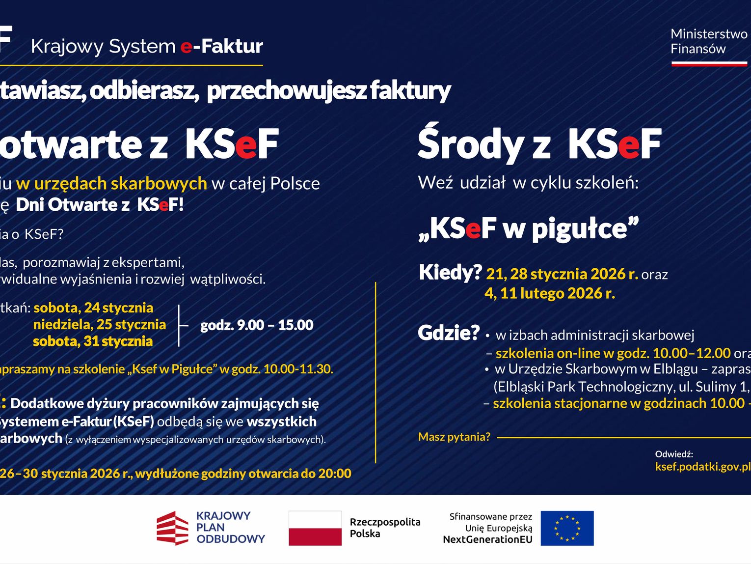 Z załączonego plakatu przedsiębiorca dowie się o terminach dni otwartych oraz o organizowanych kolejnych szkoleniach stacjonarnych i on-line.