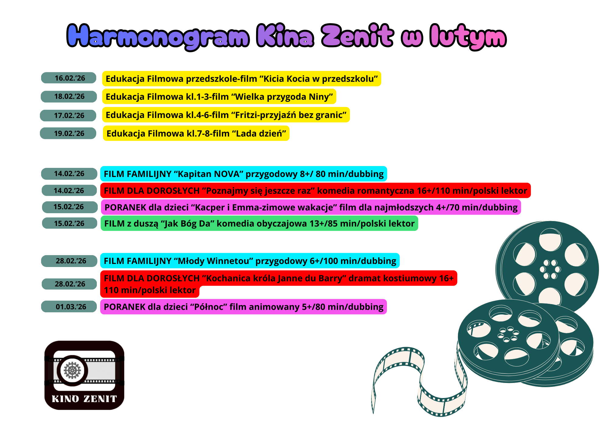 Propozycja seansów w zakładce kultura/kino