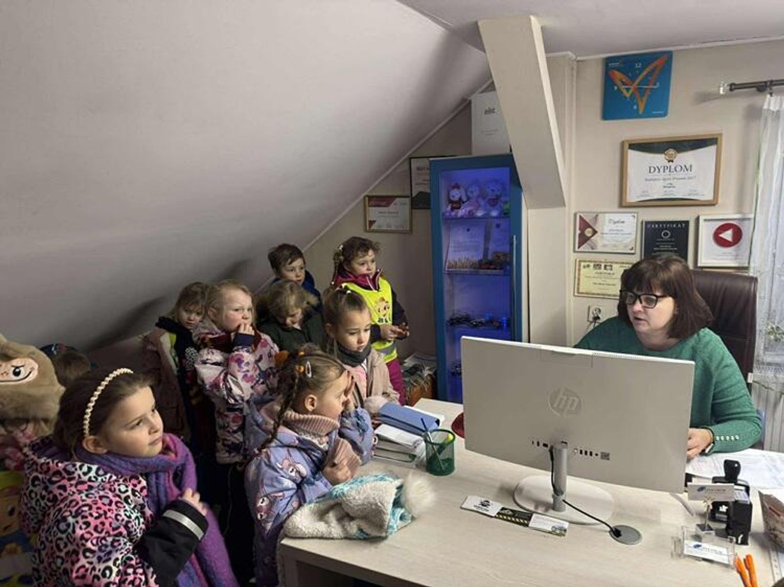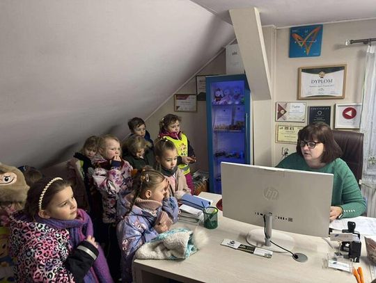 Odwiedziliśmy tam mamę naszej Stefci, panią Kasię. W ramach realizacji "Przedszkolnego programu preorientacji zawodowej" pani Kasia opowiedziała nam, czym zajmuje się jako agent ubezpieczeniowy. Dowiedzieliśmy się, co i w jaki sposób można ubezpieczyć oraz jak zostać takim agentem. W trakcie wizyty pojawili się klienci, więc dzieci mogły „na żywo" zobaczyć, na czym polega codzienna praca agenta ubezpieczeniowego.