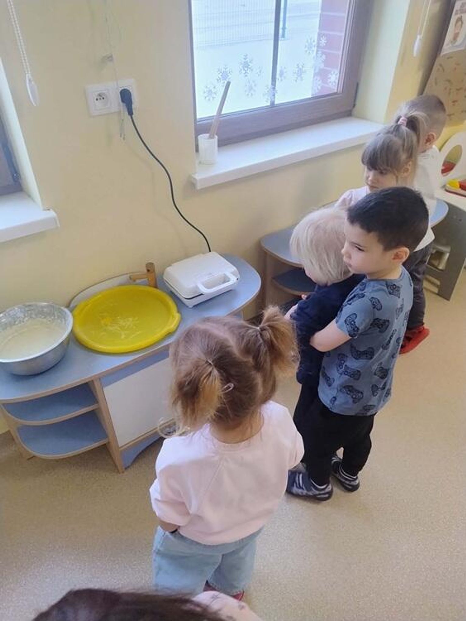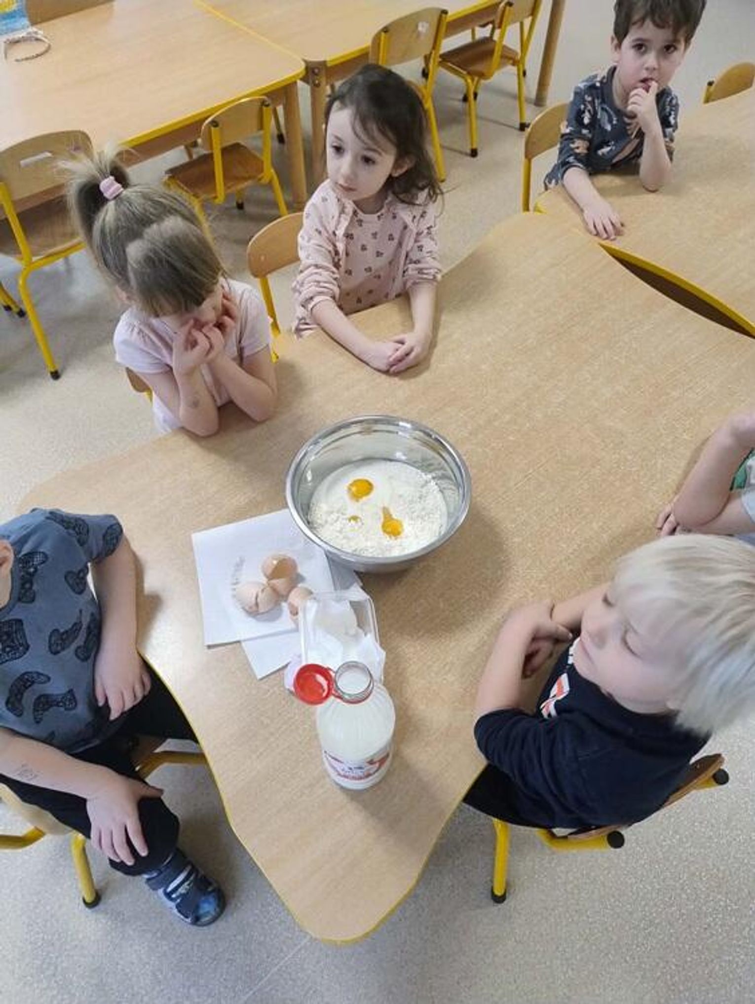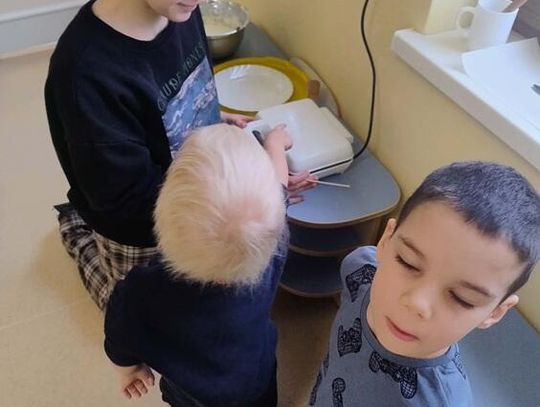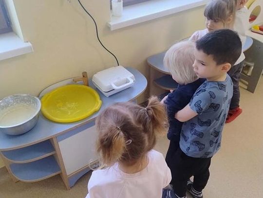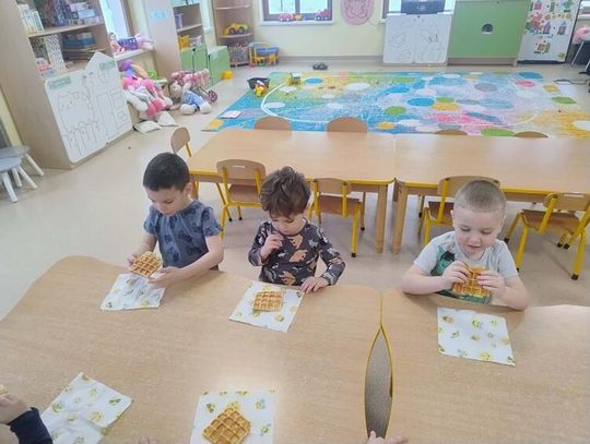 Dzieci poznały tradycje związane z Tłustym Czwartkiem oraz dowiedziały się, skąd wziął się zwyczaj jedzenia pączków i innych wypieków. Podczas zajęć rozmawialiśmy o dawnych zwyczajach, a także o tym, jak Tłusty Czwartek obchodzony jest obecnie. Nie zabrakło również aktywności plastycznych – przedszkolaki kolorowały tematyczne obrazki związane z pączkami i słodkościami. Najwięcej radości sprawiło wspólne przygotowywanie gofrów. Dzieci z zaangażowaniem uczestniczyły w ich tworzeniu, a następnie z apetytem je degustowały. To był bardzo radosny i słodki dzień pełen uśmiechu!