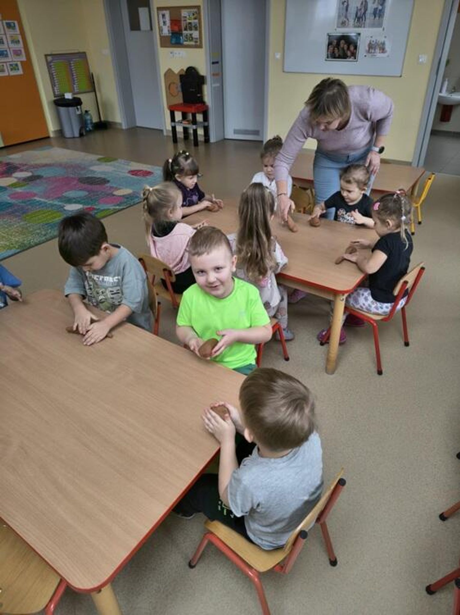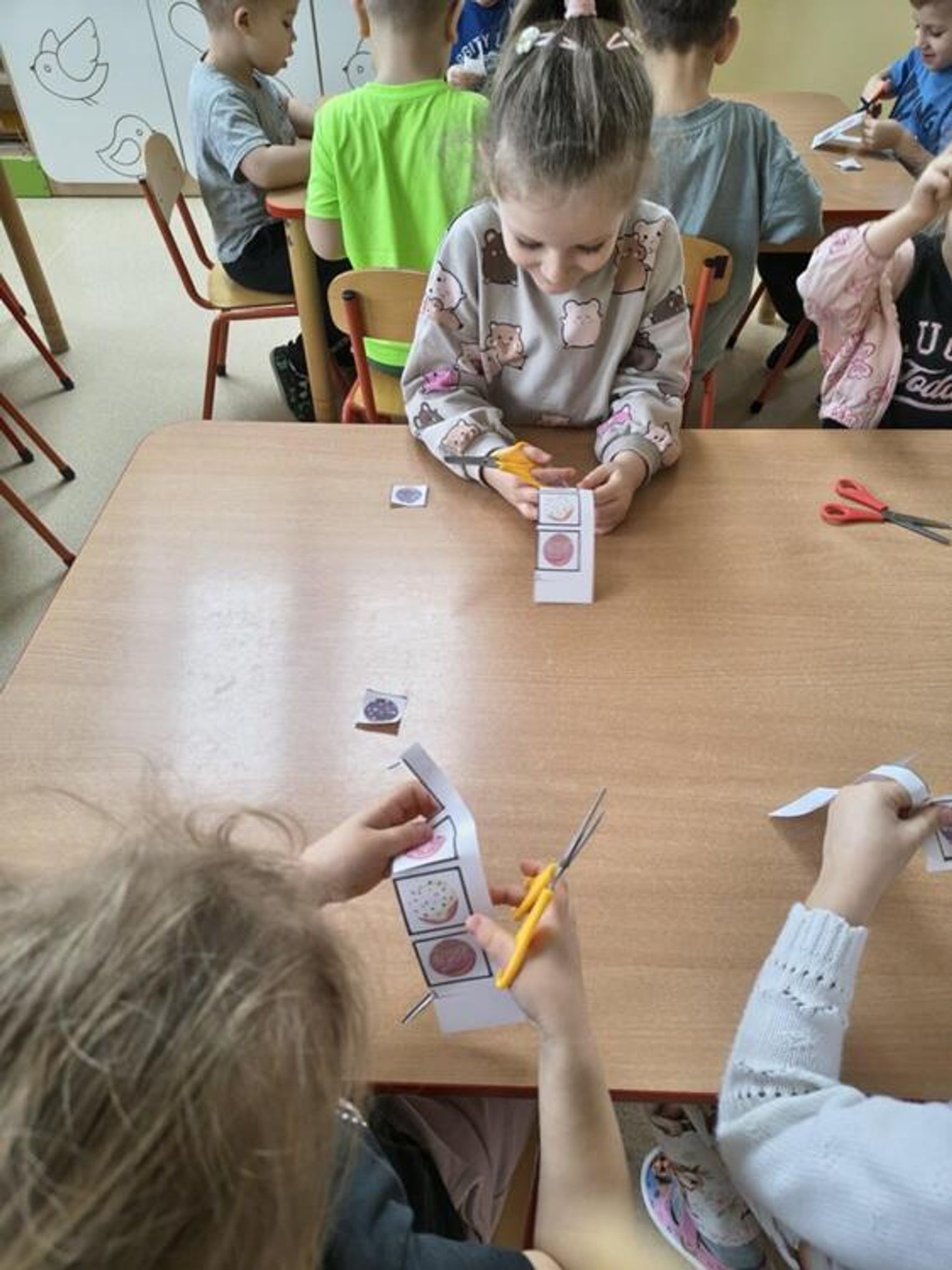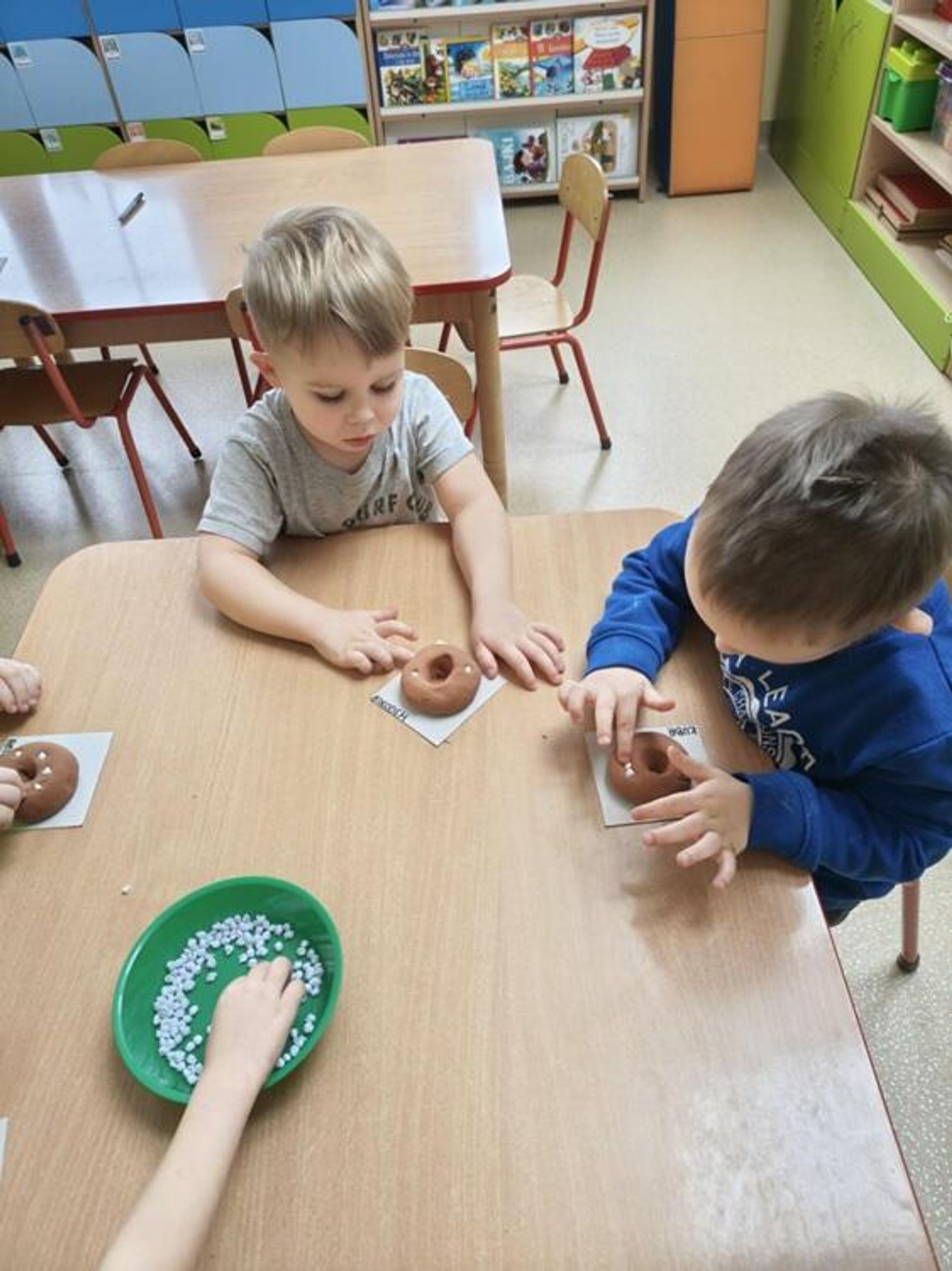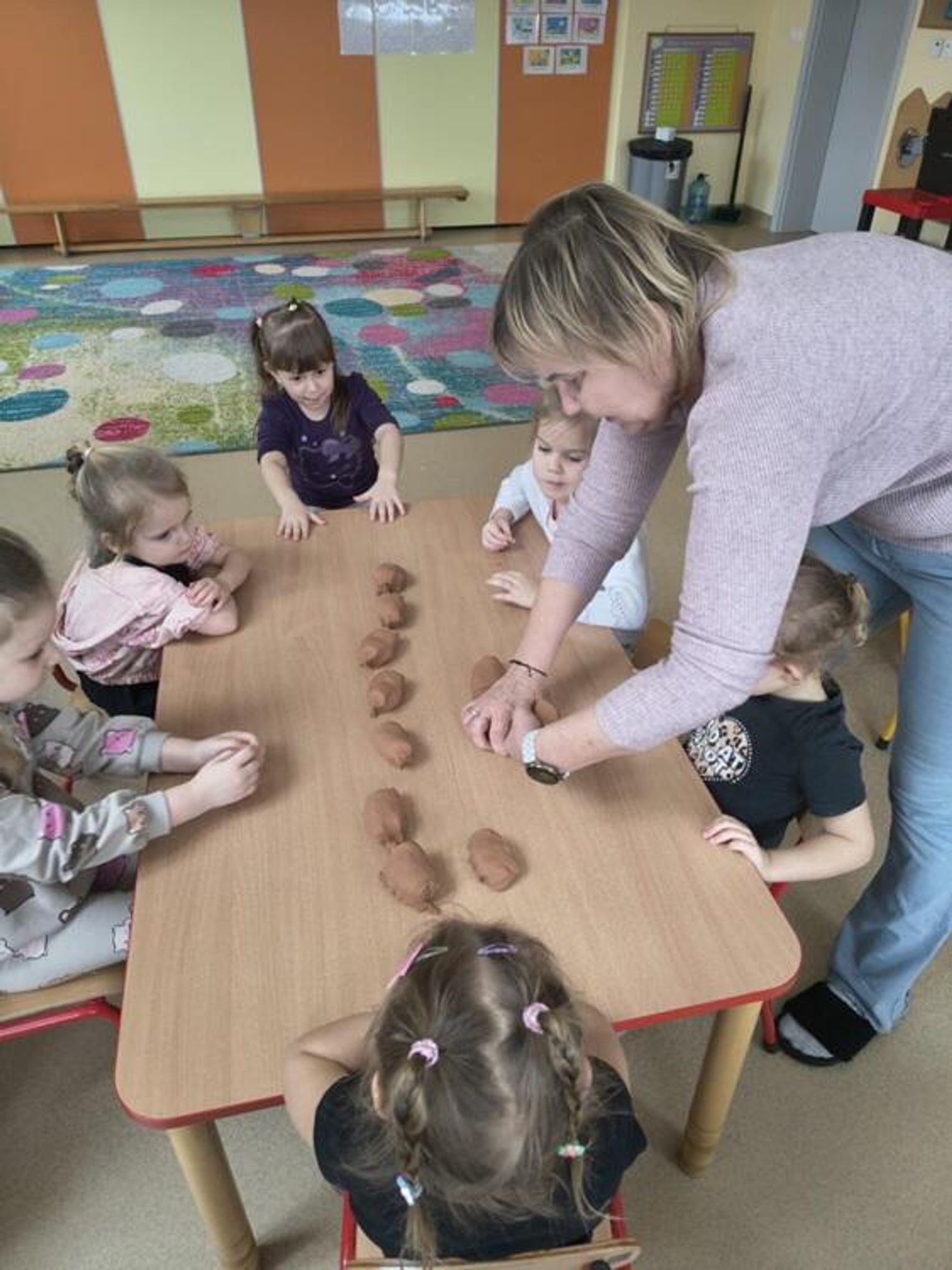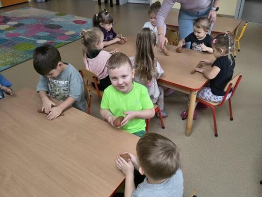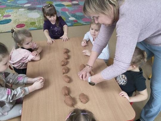 Tłusty Czwartek był w naszym przedszkolu prawdziwie słodkim świętem. Grupa "Kotki" również aktywnie uczestniczyła w jego obchodach. Dzieci obejrzały krótki film edukacyjny o tradycjach tego dnia, a potem przystąpiły do działania. Układały sekwencje z papierowych pączków, ćwicząc przy tym logiczne myślenie i spostrzegawczość, a potem tworzyły własne donaty - pączki z dziurką z masy plastycznej. Powstały piękne prace, które mogą być nietypową dekoracją w domach małych artystów. Był to dzień pełen uśmiechów, który pokazał, że tradycję można celebrować nie tylko smakując słodkości, ale także rozwijać wyobraźnię i zdolności artystyczne.