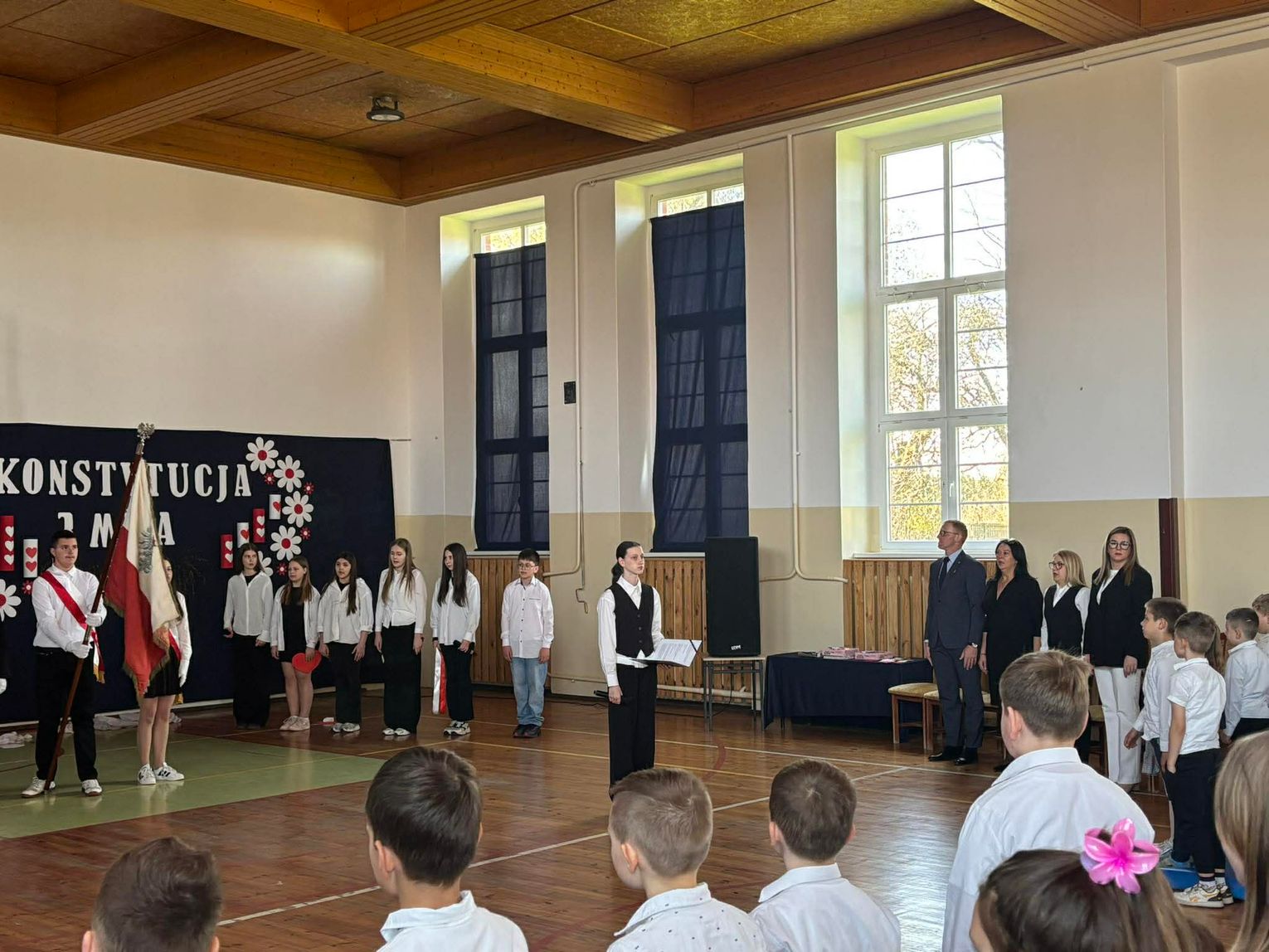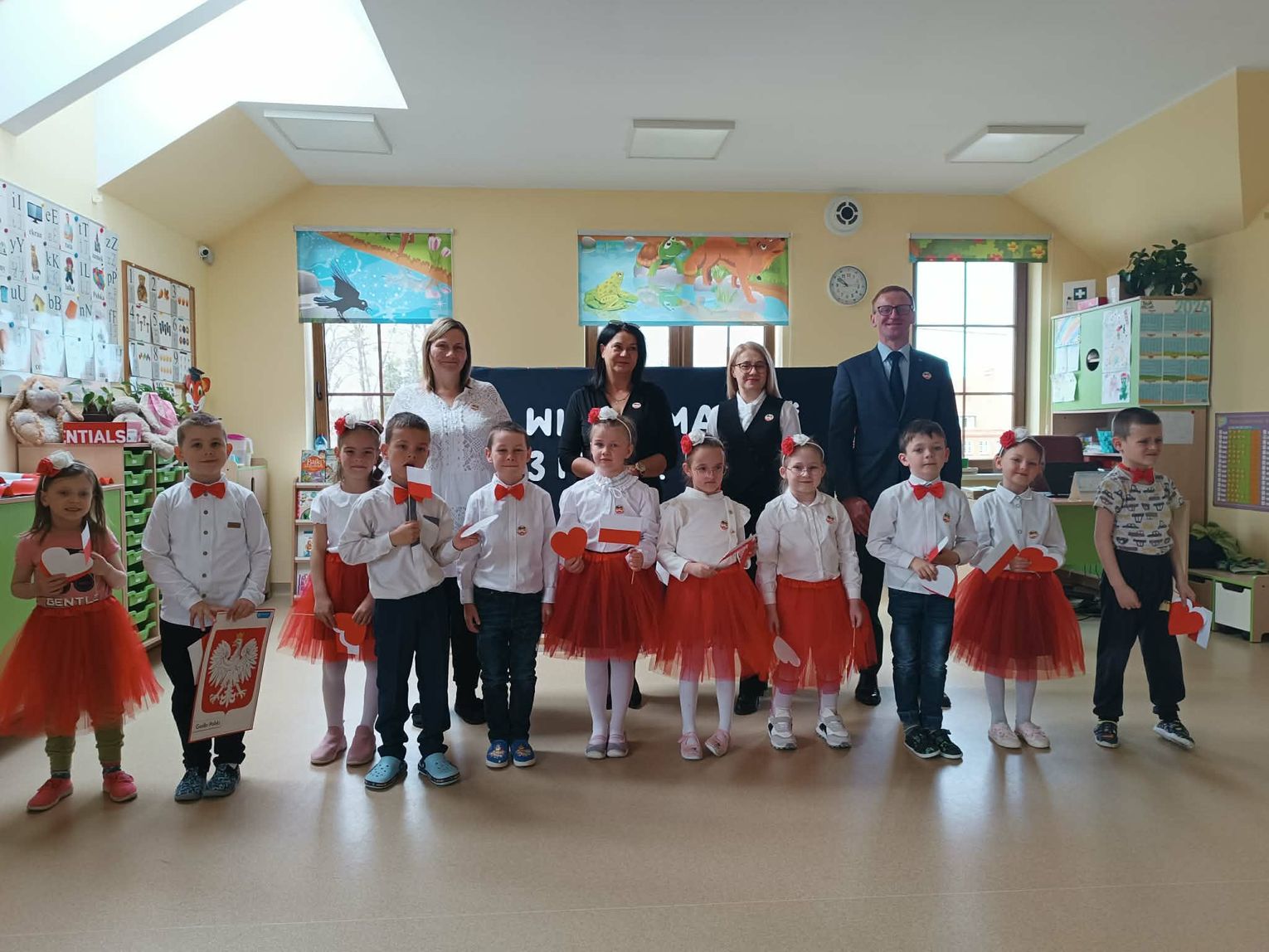 Obchody majowych świąt w naszej Gminie rozpoczęły się już dziś, 30 kwietnia. Pani Renata Bednarczyk Burmistrz Miasta i Gminy Młynary oraz Pani Anna Kołodziej - Rabiczko Sekretarz Miasta i Gminy Młynary wzięły udział w uroczystych apelach i akademiach poświęconych rocznicy uchwalenia Konstytucji 3 Maja, które odbyły się w Przedszkolu im. Jana Brzechwy w Młynarach oraz w Szkole Podstawowej im. Stefana Żeromskiego w Młynarach. Były to niezwykle podniosłe i wzruszające wydarzenia, podczas których dzieci i młodzież zaprezentowały programy artystyczne, przypominające o znaczeniu jednego z najważniejszych aktów prawnych w historii Polski. Konstytucja 3 Maja to symbol dążenia do wolności, odpowiedzialności obywatelskiej oraz troski o dobro wspólne – wartości, które warto pielęgnować i przekazywać kolejnym pokoleniom.