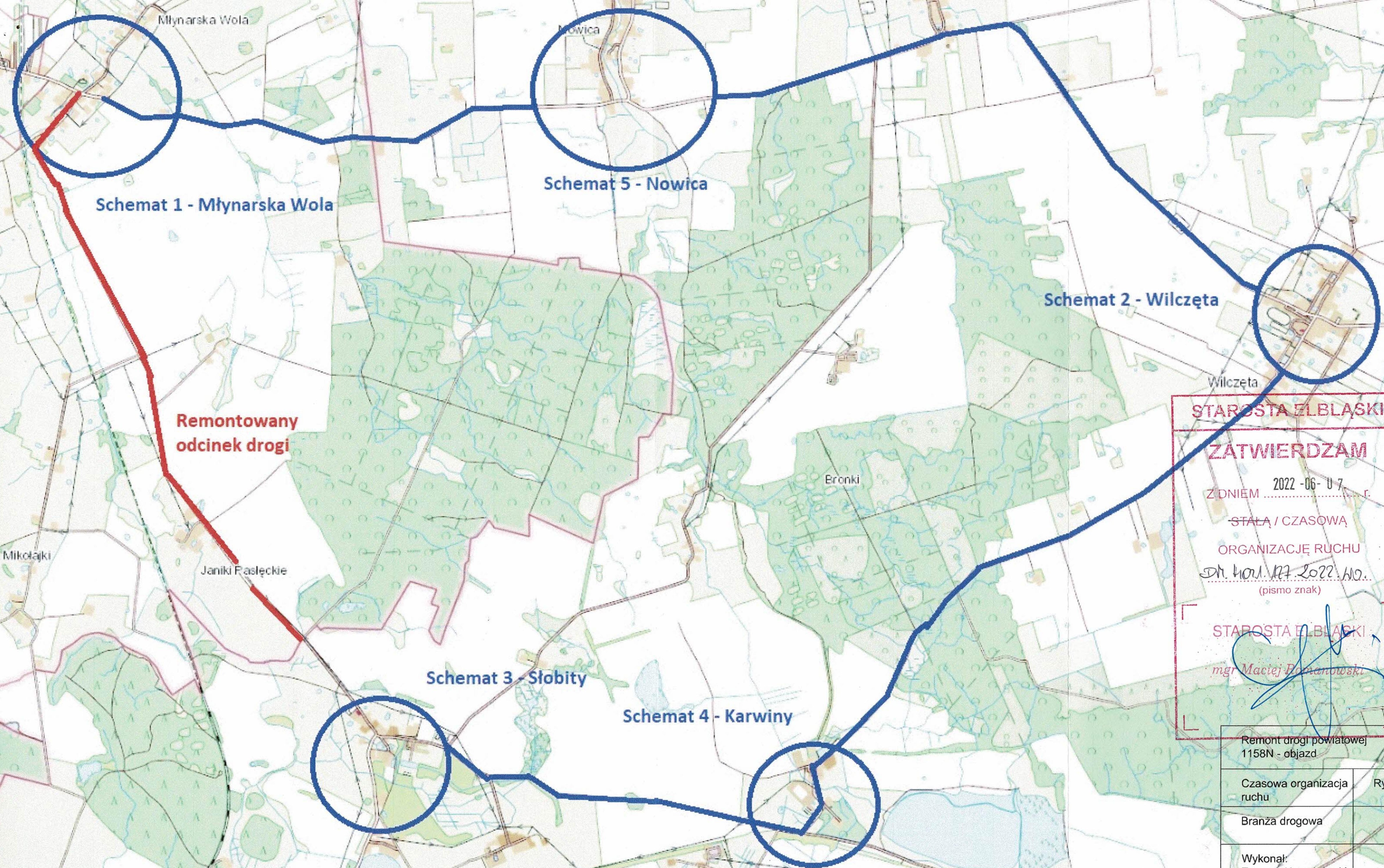 Przedsiębiorstwo Produkcyjno-Usługowe "TUGA" Sp. z o.o. jako Wykonawca robót pn. „Remont drogi powiatowej Młynarska Wola - Janiki Pasłęckie (granica powiatu)" informuje, że w związku z prowadzonymi robotami drogowymi konieczne jest całkowite zamknięcie odcinka drogi od dnia 08.06.2022 r. do odwołania.
