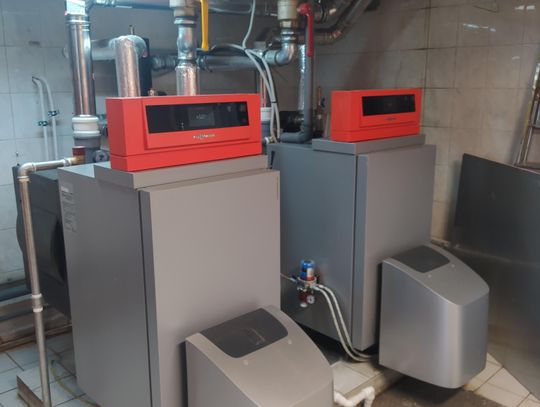 W ramach zadania, wyłoniony w drodze przetargu nieograniczonego Wykonawca - Pan Grzegorz Duda prowadzący działalność gospodarczą pod nazwą: Usługi Budowlane i Hydrauliczne Grzegorz Duda z siedzibą w Ornecie, zdemontował stary piec olejowy, znajdujący się w kotłowni olejowej w Szkole Podstawowej w Młynarach, dostarczył i zamontował 2 nowe piece olejowe Viessman Vitorondens 200-T J2RA63/80/100 kW oraz wymienił wkłady kominowe.