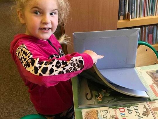 Przedszkolaki wzięły udział w zajęciach pt. "Biblioteka - królestwo książek", w czasie których mogły zajrzeć w każdy kącik biblioteki, pooglądać wiele różnych pozycji książkowych oraz zadawać pytania dla pani bibliotekarki. Pani Beata z wielką przyjemnością odpowiadała dzieciom na wszystkie pytania. Dzieci dowiedziały się, co należy zrobić, aby stać się czytelnikiem biblioteki, oraz jak należy się w niej zachować.