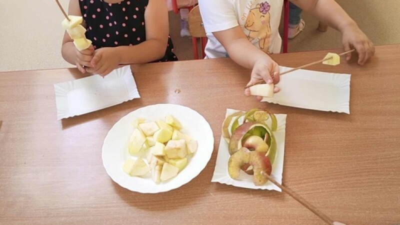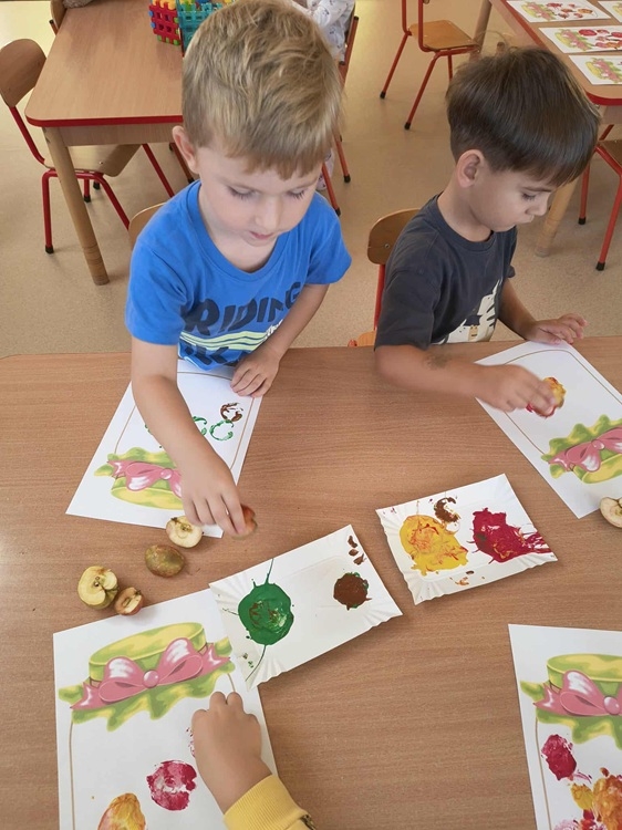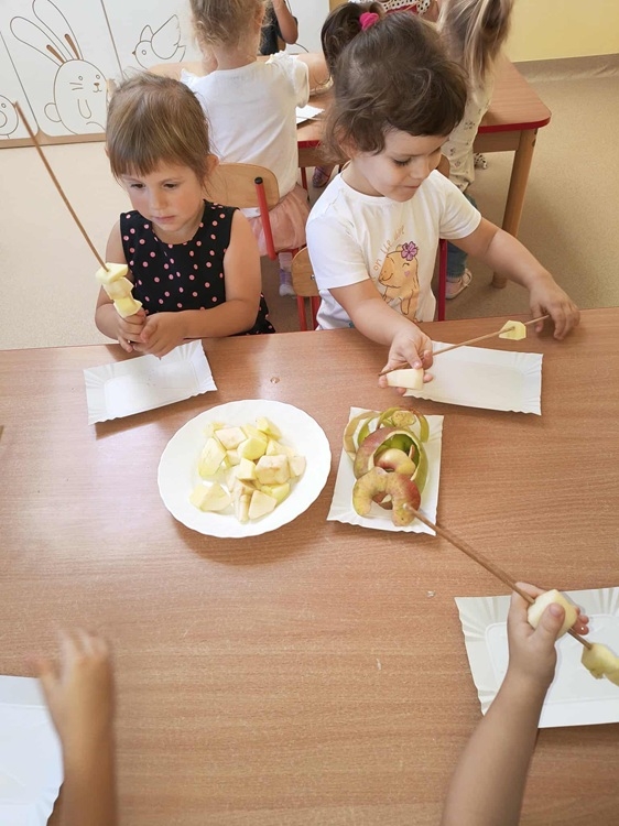 To wyjątkowe święto jest okazją, aby poznać zdrowotne walory tego smacznego owocu, oraz zachęcać dzieci do spożywania jabłek pod różnymi postaciami. Tego dnia „Kotki” tworzyły kolorowe stempelki z jabłek w szablonach słoików, dzięki którym powstały piękne kompoty, segregowały jabłka według koloru, brały udział w zabawach z nutką rywalizacji. Najwięcej frajdy sprawiło im samodzielne przygotowanie szaszłyków jabłkowych, które później zjadły ze smakiem.